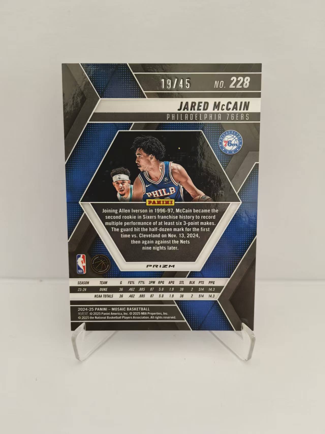 2024-25 Panini Mosaic Jared McCain RC 魔仙哥 76人 贾里德 麦凯恩 新秀年 马赛克 白折 19/45编 低编 限量稀有 收藏必备 卡品如图 多多Y