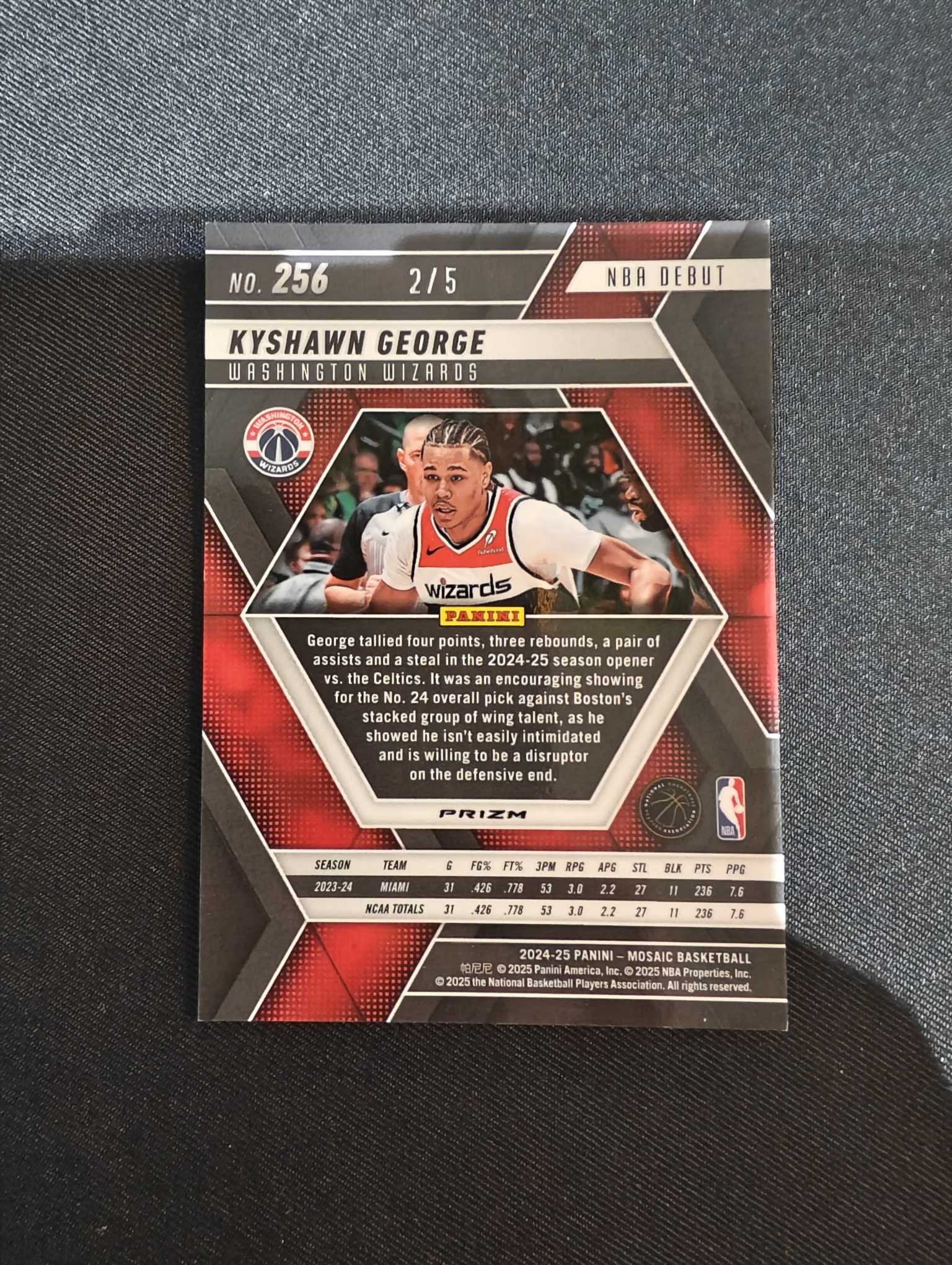 2024-25 Panini Mosaic Kyshawn George 马赛克 新秀 RC  凯肖恩 乔治 奇才 5编 绿折 卡品如图 收藏必备
