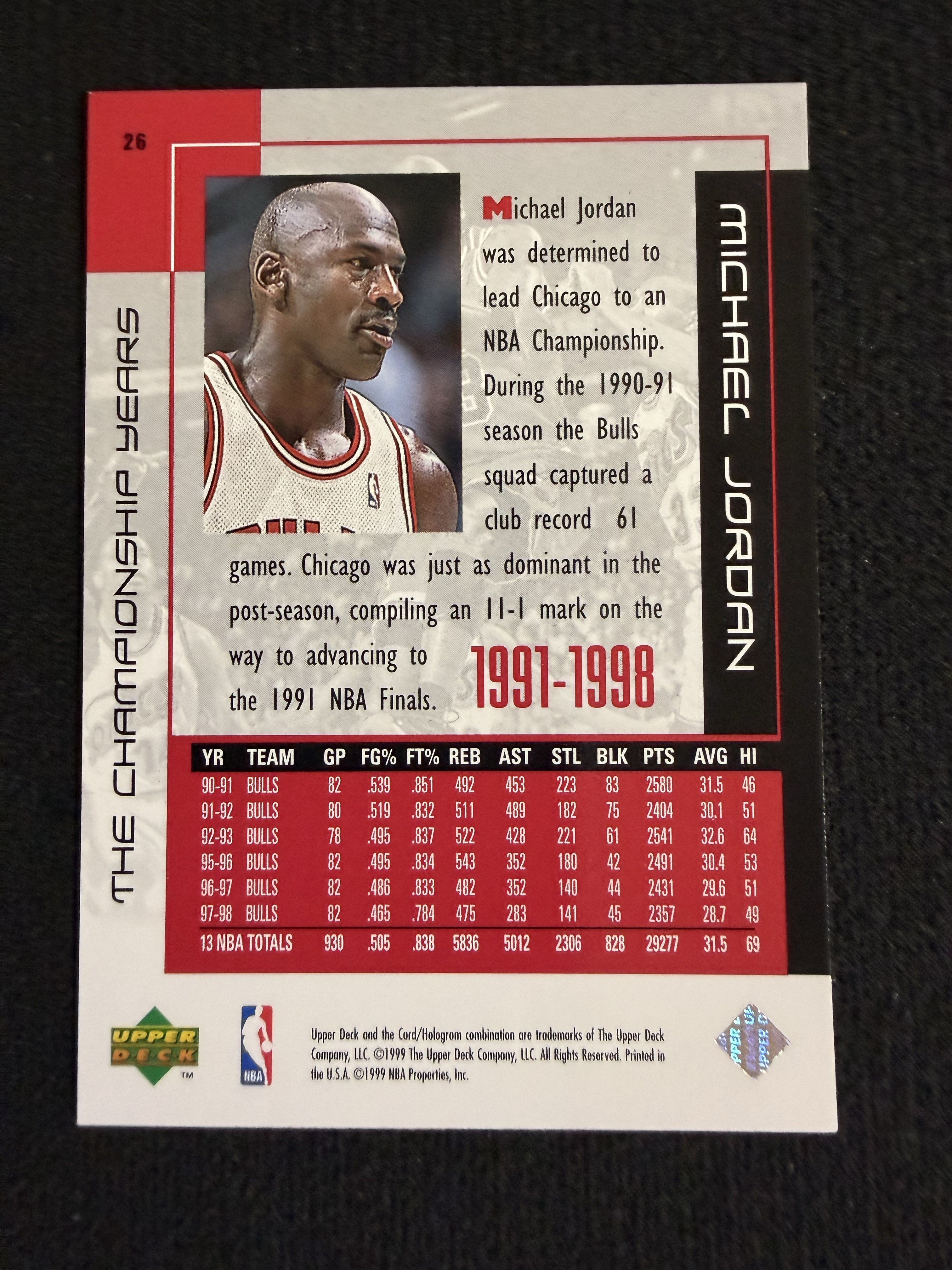 1998-99 Upper Deck NBA Michael Jordan 公牛 迈克尔 乔丹 UD金标 红平行 经典老特 老卡 收藏必备 (宇哥)