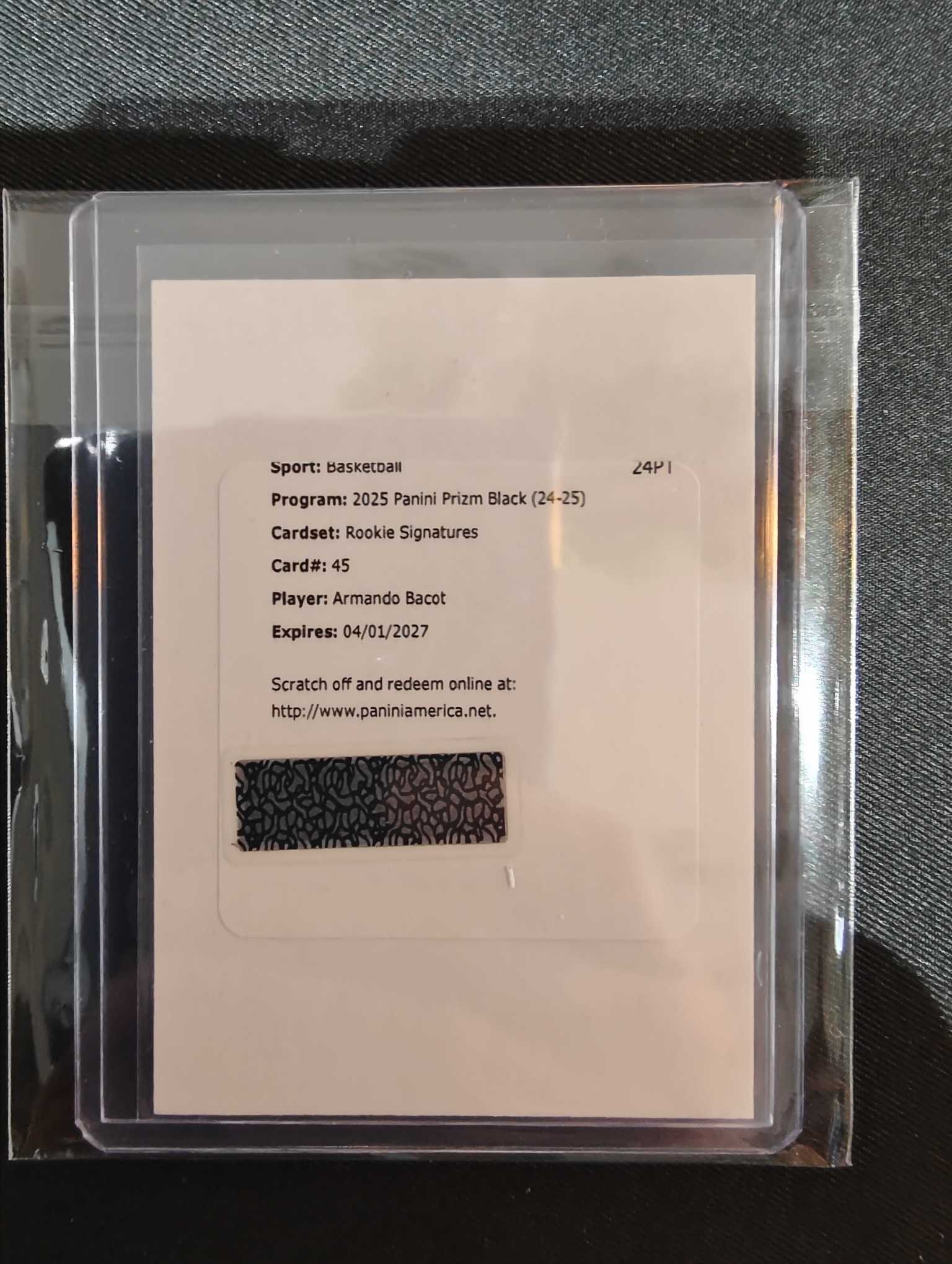 2024-25 Panini Prizm Black Armando Bacot RC 阿曼多 巴科特 灰熊 RS 新秀 签字卡 交换板 只发板子 未来可期