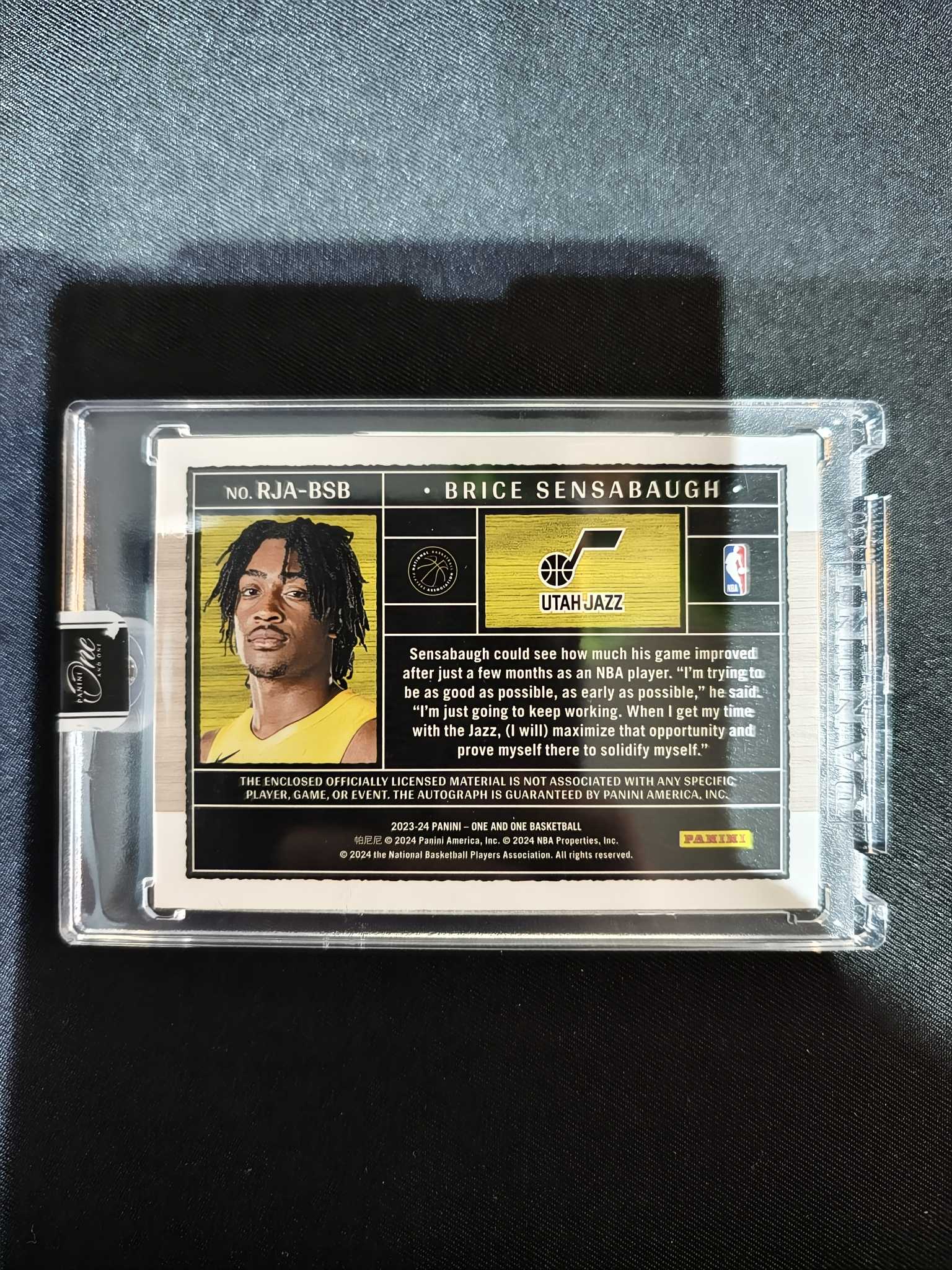 2023-24 panini one and one Brice sensabaugh 爵士 新秀 RC 森萨博 16/35编 RJA 球衣物料 签字 卡签 原封砖 卡品如图