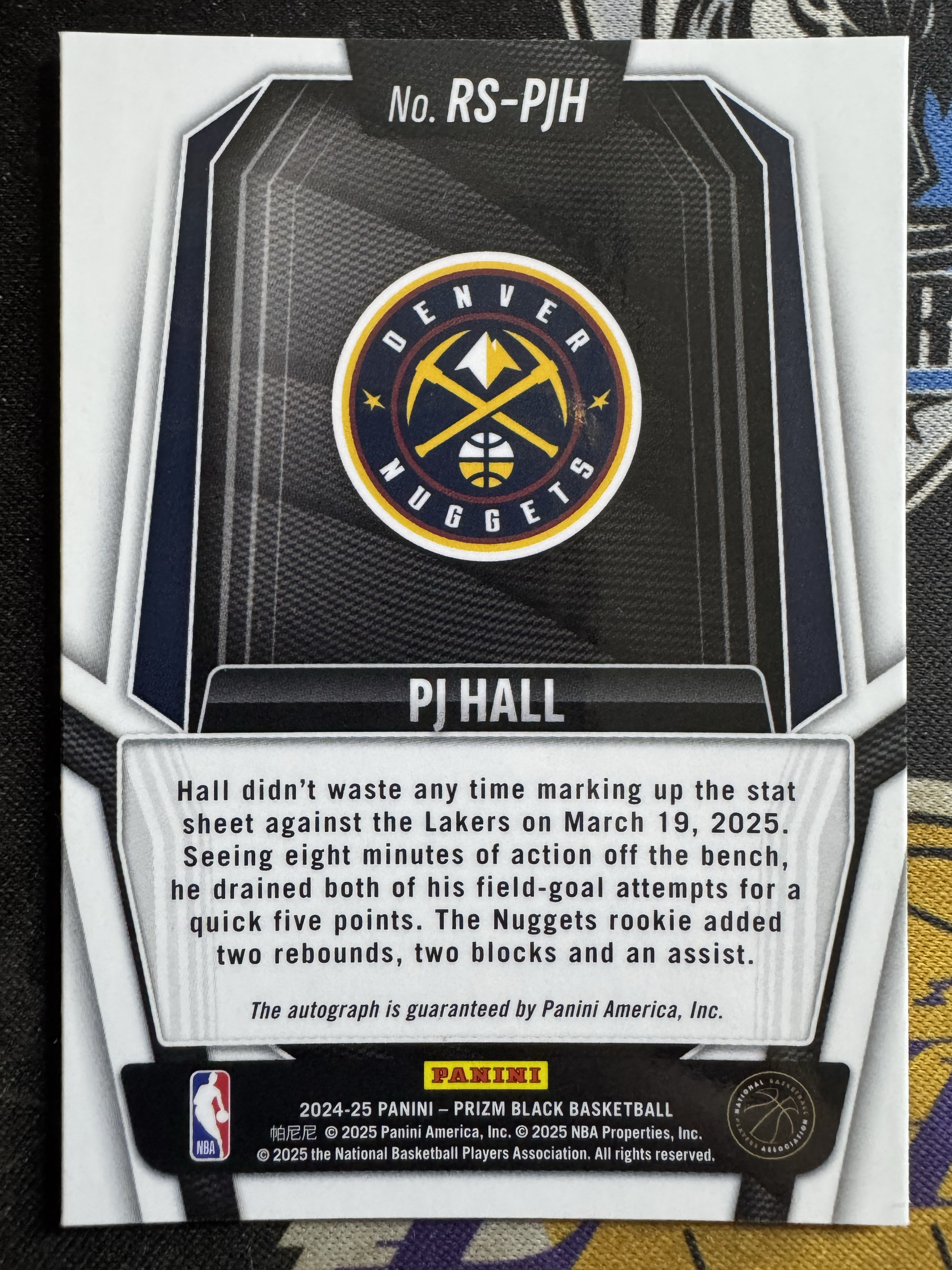 2024-25 Panini Prizm Pj Hall RC Pj 霍尔 掘金 base签 氧化