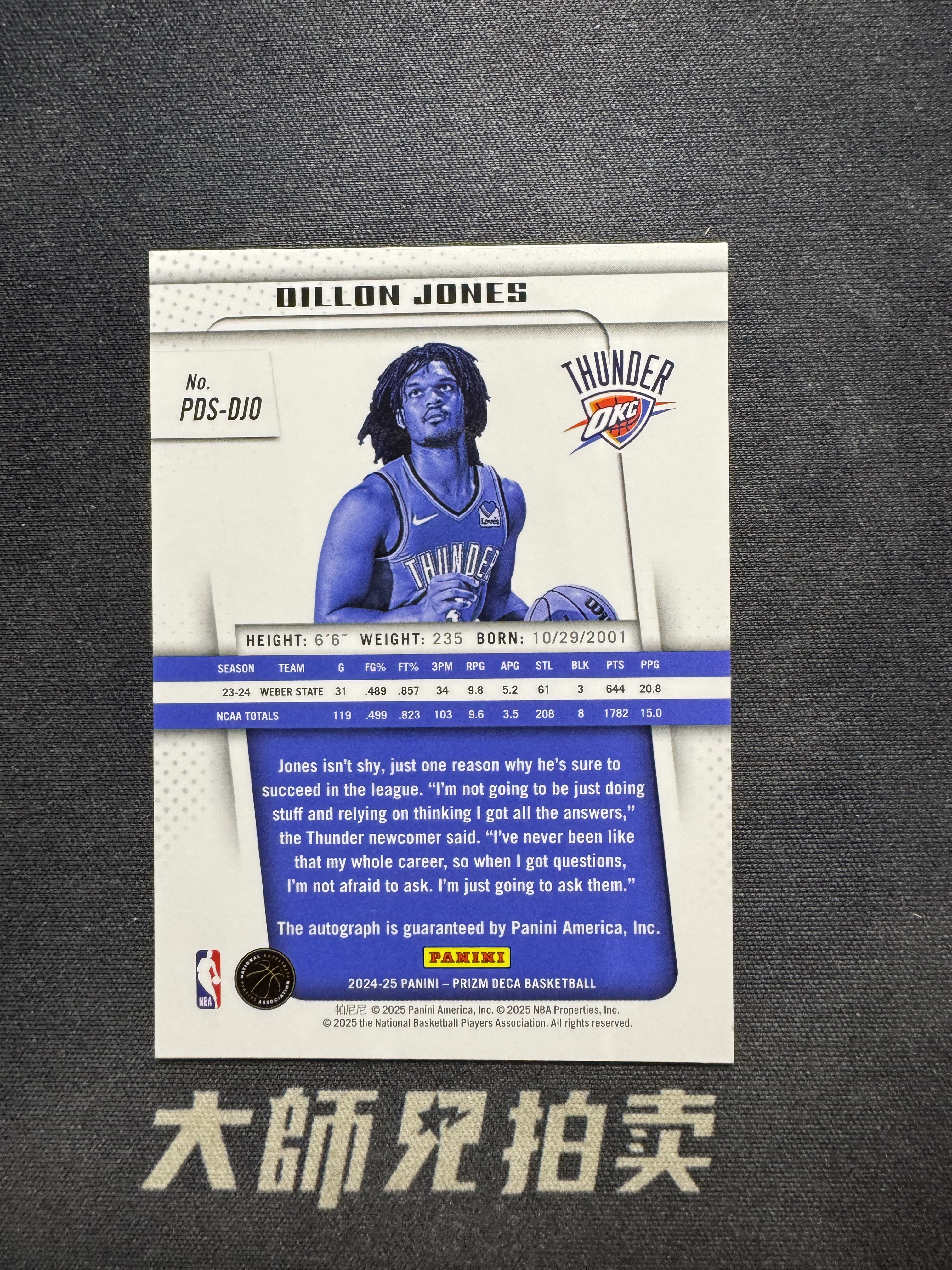 【大师兄拍卖】2024-25 Panini prizm deca DILLON JONES RC 雷霆 狄龙 琼斯 新秀 pz 签字 通行品 -keith-