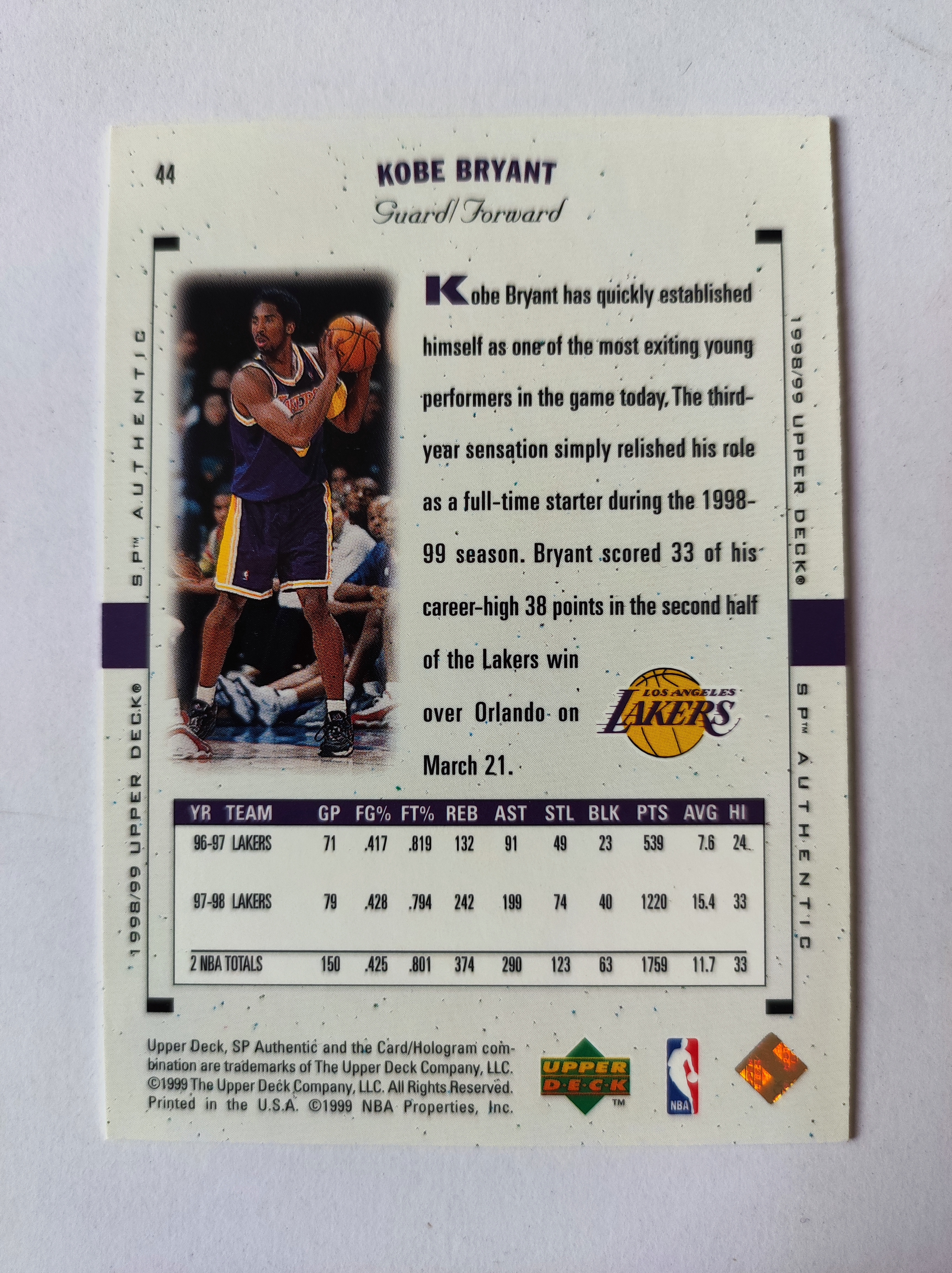 1999-00 Upper Deck SP Authentic Kobe Bryant 科比 布莱恩特 老大 黑曼巴 稀有 老卡 四大分卫之一 瑕疵看图