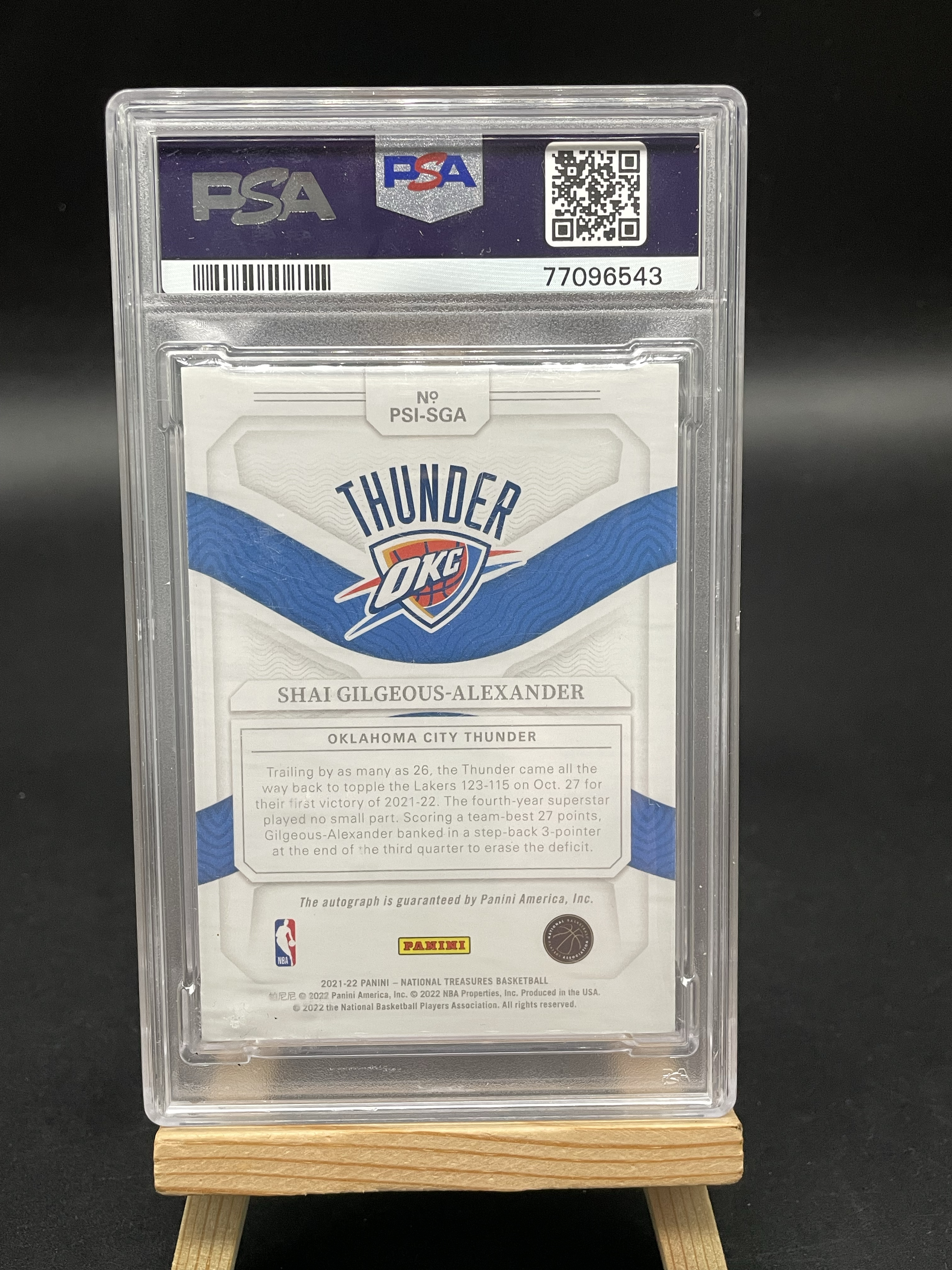 2021-22 Panini National Shai Gilgeous-Alexander 【白鸟代卖 恐龙 寄付特快】国宝 雷霆 亚历山大 SGA /25编 签字 卡签 背号签 psa9/10分