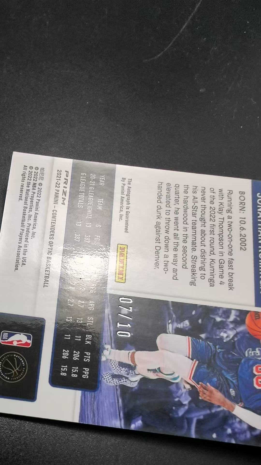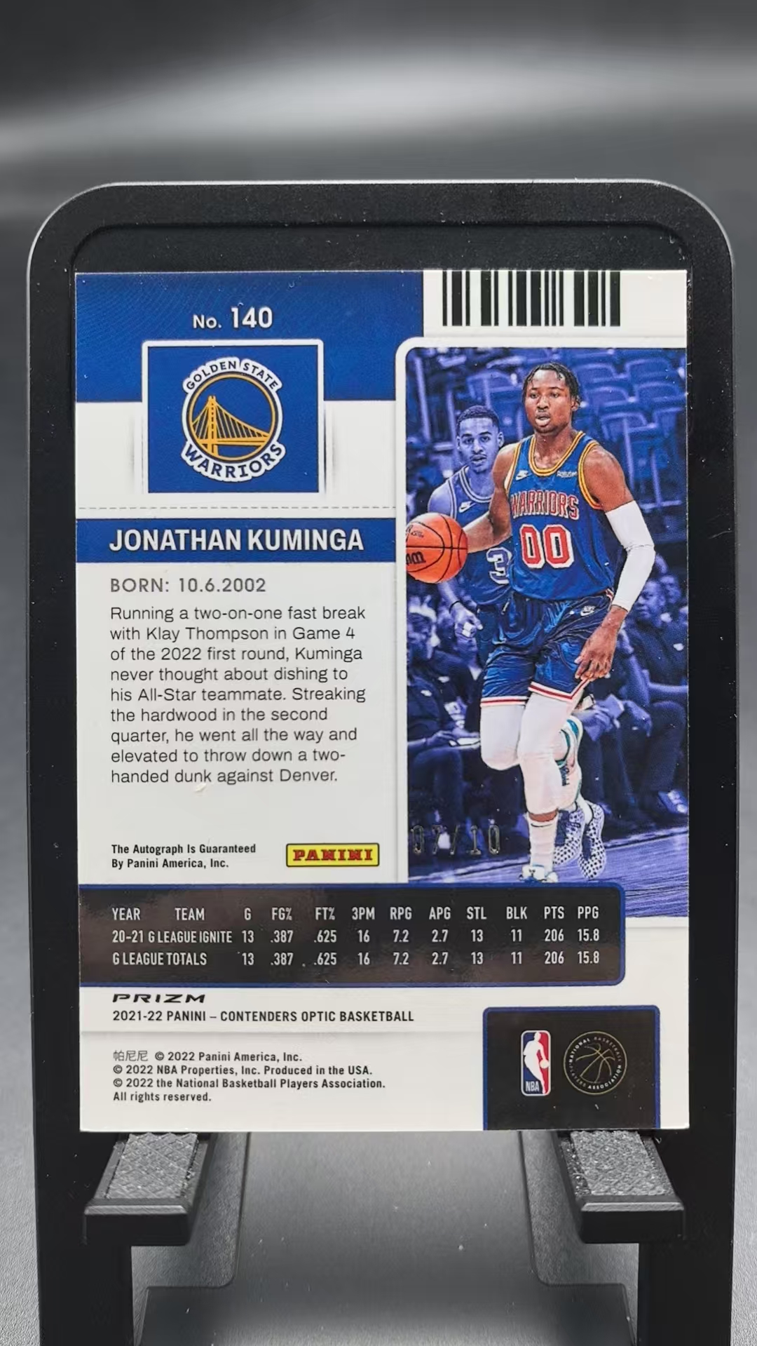 2021-22 Panini Contenders Jonathan Kuminga RC 【EC】球票OP 勇士 乔纳森 库明加 7/10编 新秀 签字 卡签 折射 金折 金波纹折 瑕疵如图 洋洋6
