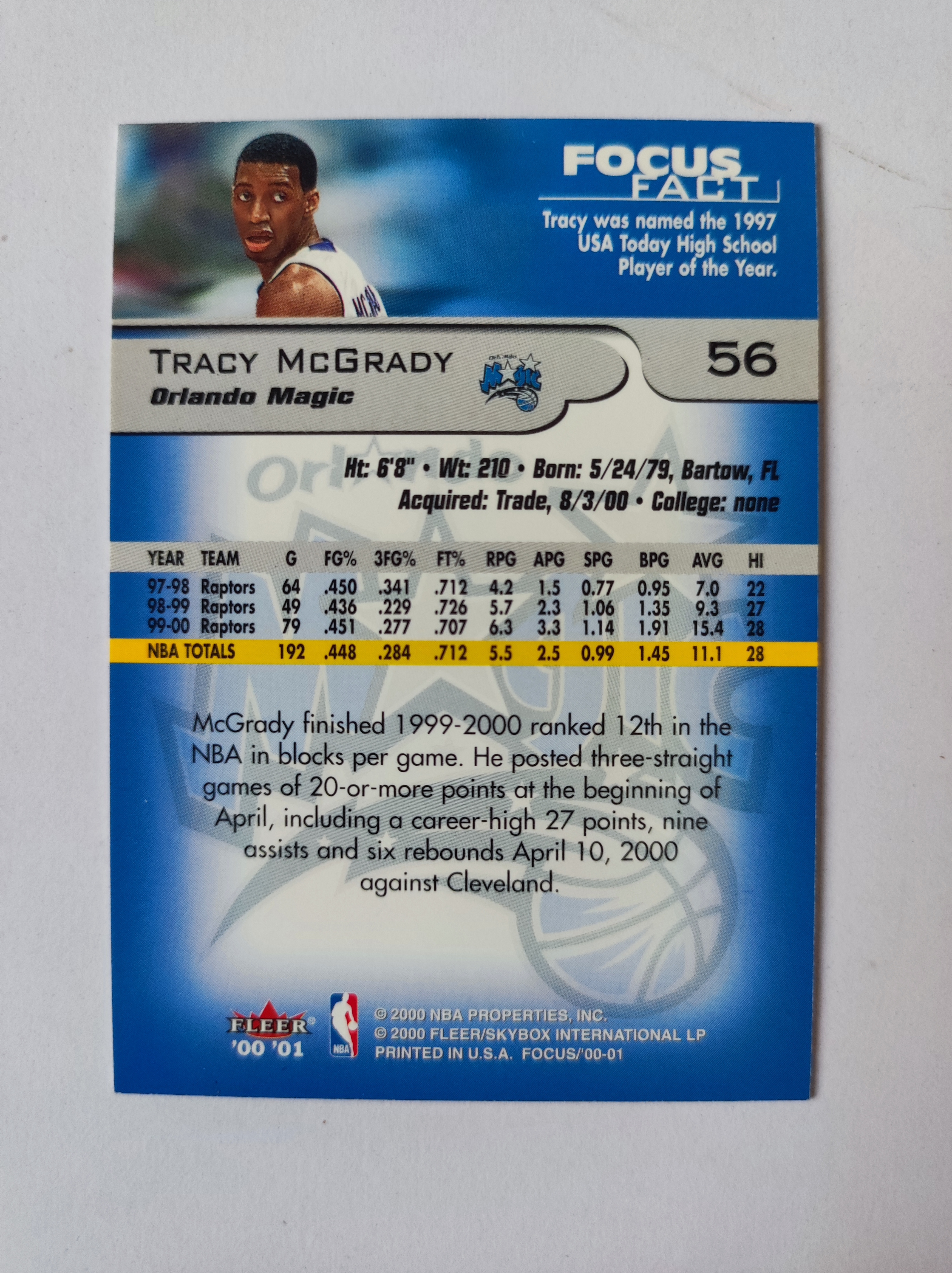 2000-01 Fleer Focus Tracy McGrady 特雷西 迈克格雷迪 麦迪 老卡 四大分卫之一 收藏必备 瑕疵看图
