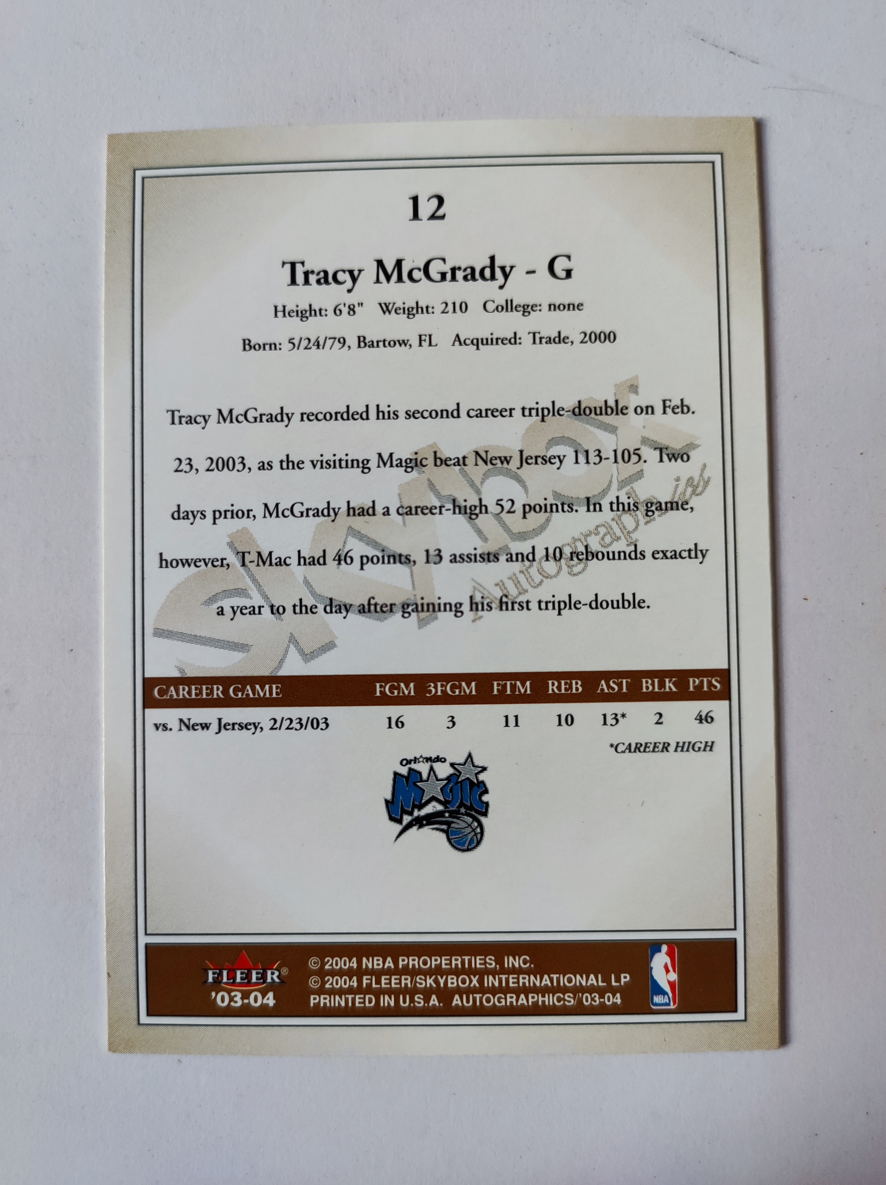 2003-04 Fleer Autographics Tracy McGrady 麦迪 特雷西 麦克格雷迪 稀有 老卡 四大分卫之一 收藏必备 瑕疵看图