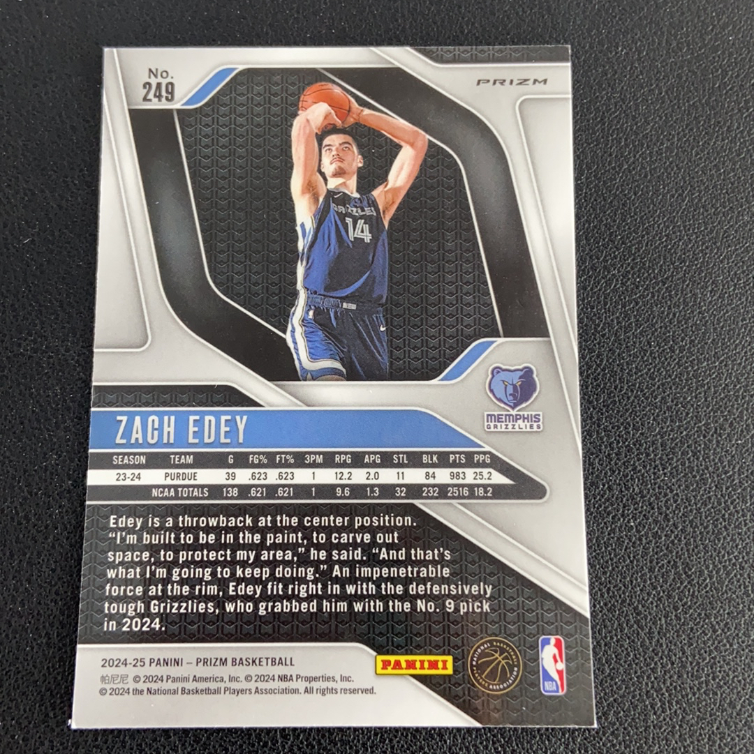 2024-25 Panini Prizm Zach Edey RC 【9527拍卖】 扎克埃迪 伊迪 粉碎冰折 pz 灰熊 新秀 卡品如图 斯蒂芬卡斯尔里萨谢萨尔克内克特麦凯恩同级