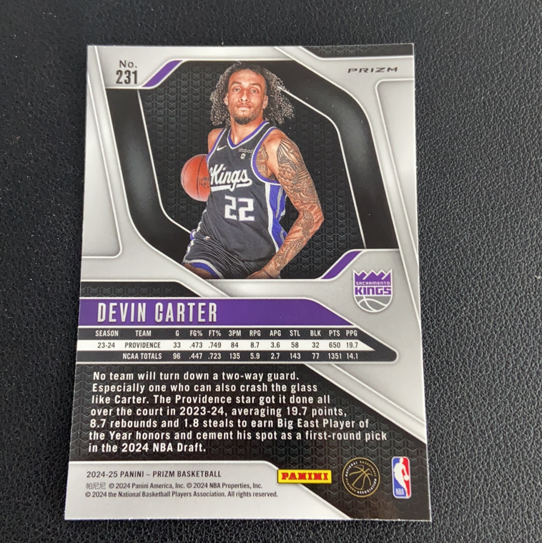 2024-25 Panini Prizm Devin Carter RC 【9527拍卖】 Pz 德文 卡特 新秀 银折 国王 潜力新星 印痕如图
