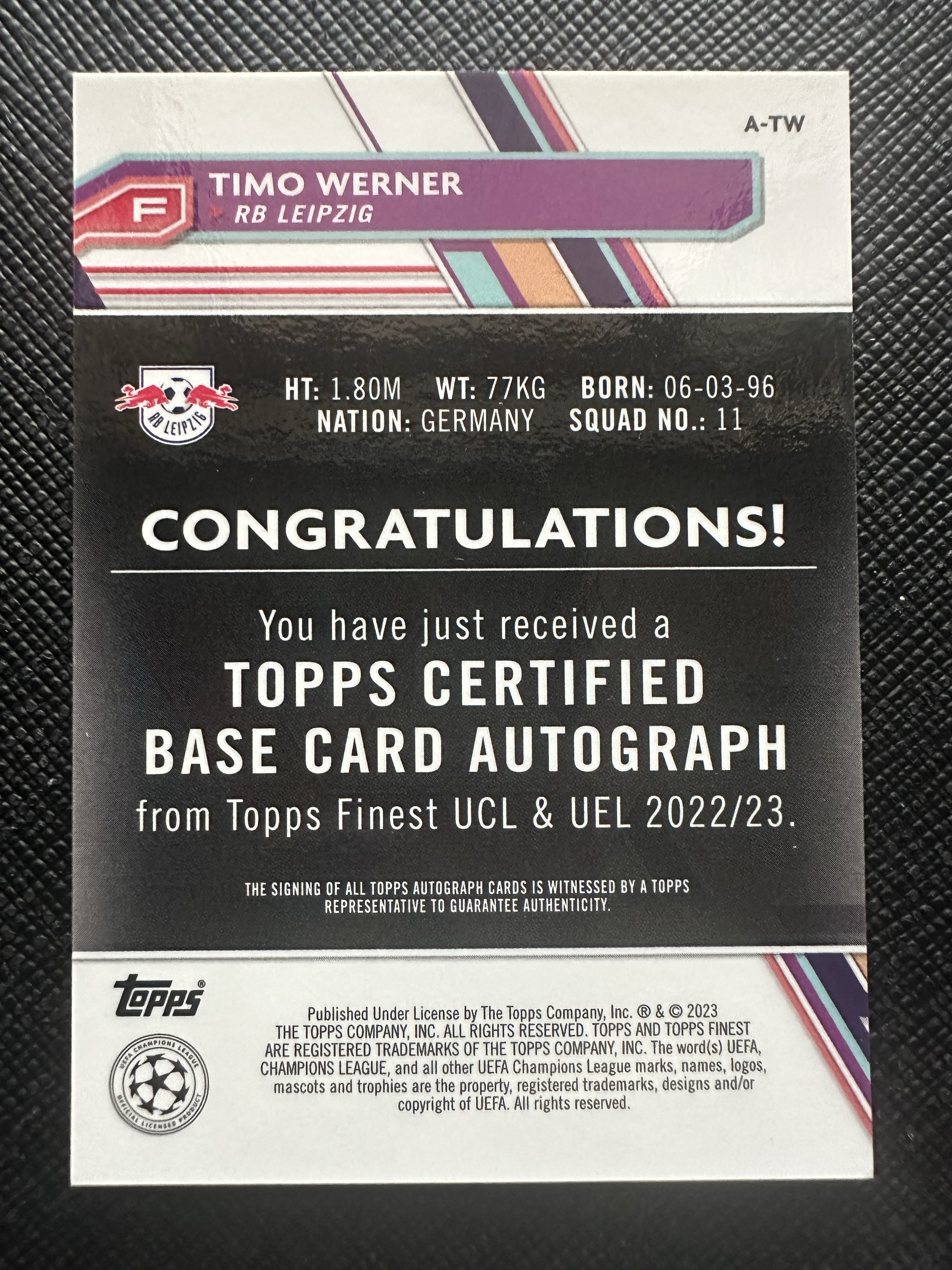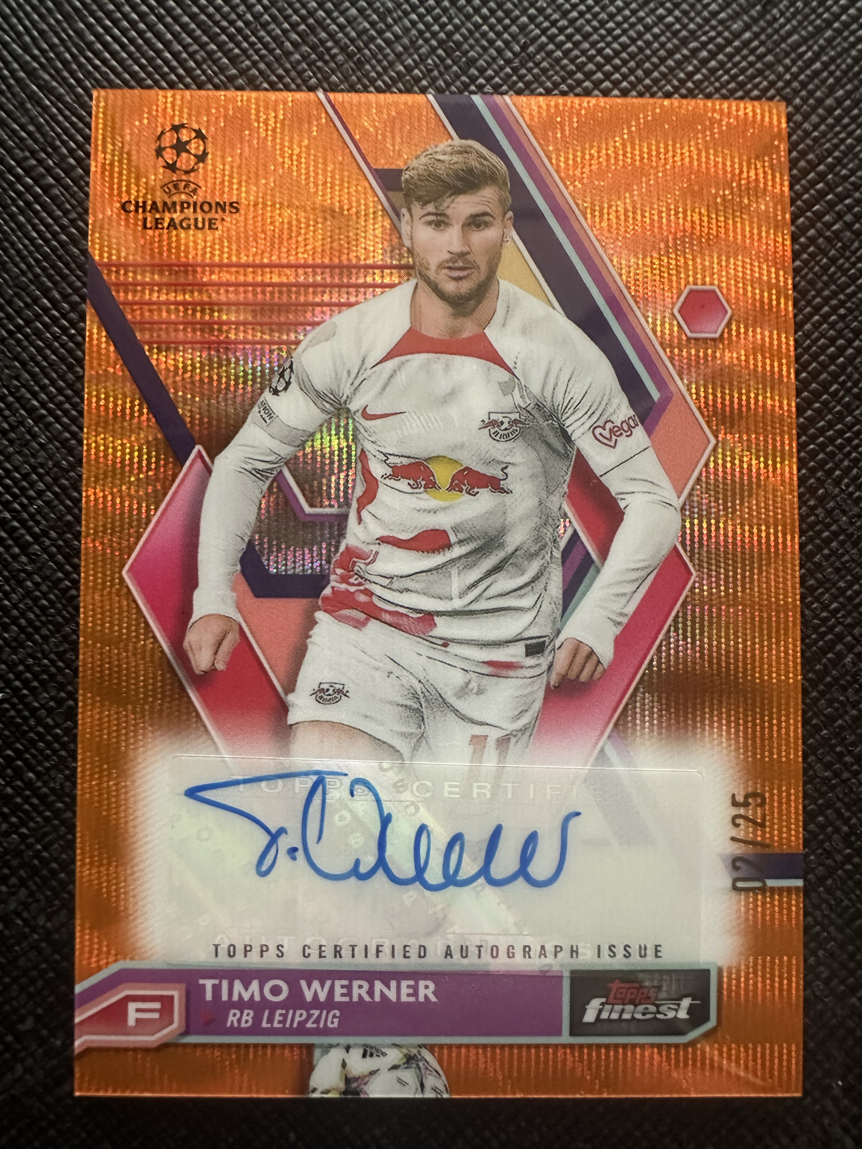 2023 Topps Finest Timo Werner 蒂莫 维尔纳 托特那姆热刺 切尔西 莱比锡 德国🇩🇪 英超 新一代前锋 投资收藏必备 签名 签字 完美签 25编 橙折 西瓜大老板
