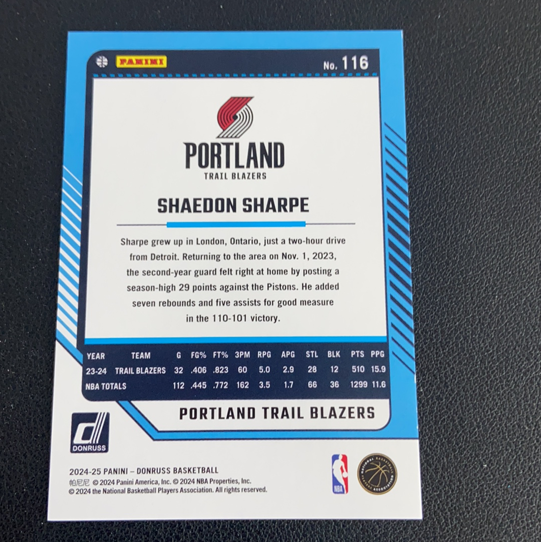 2024-25 Panini Donruss Shaedon Sharpe 杜蕾斯 开拓者 夏普 149编 佛光折 收藏必备