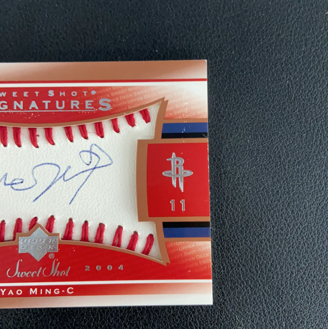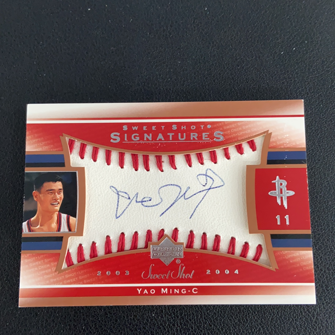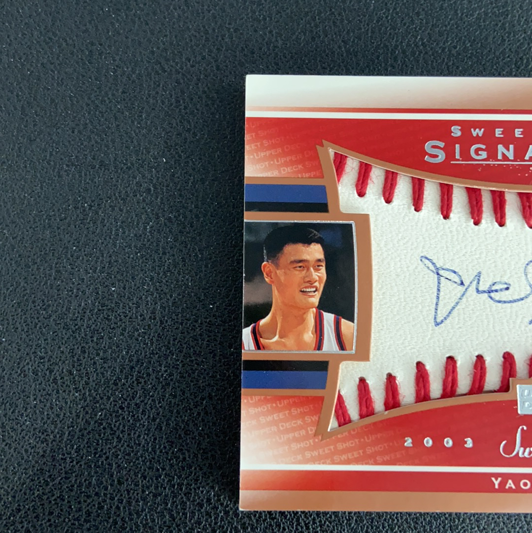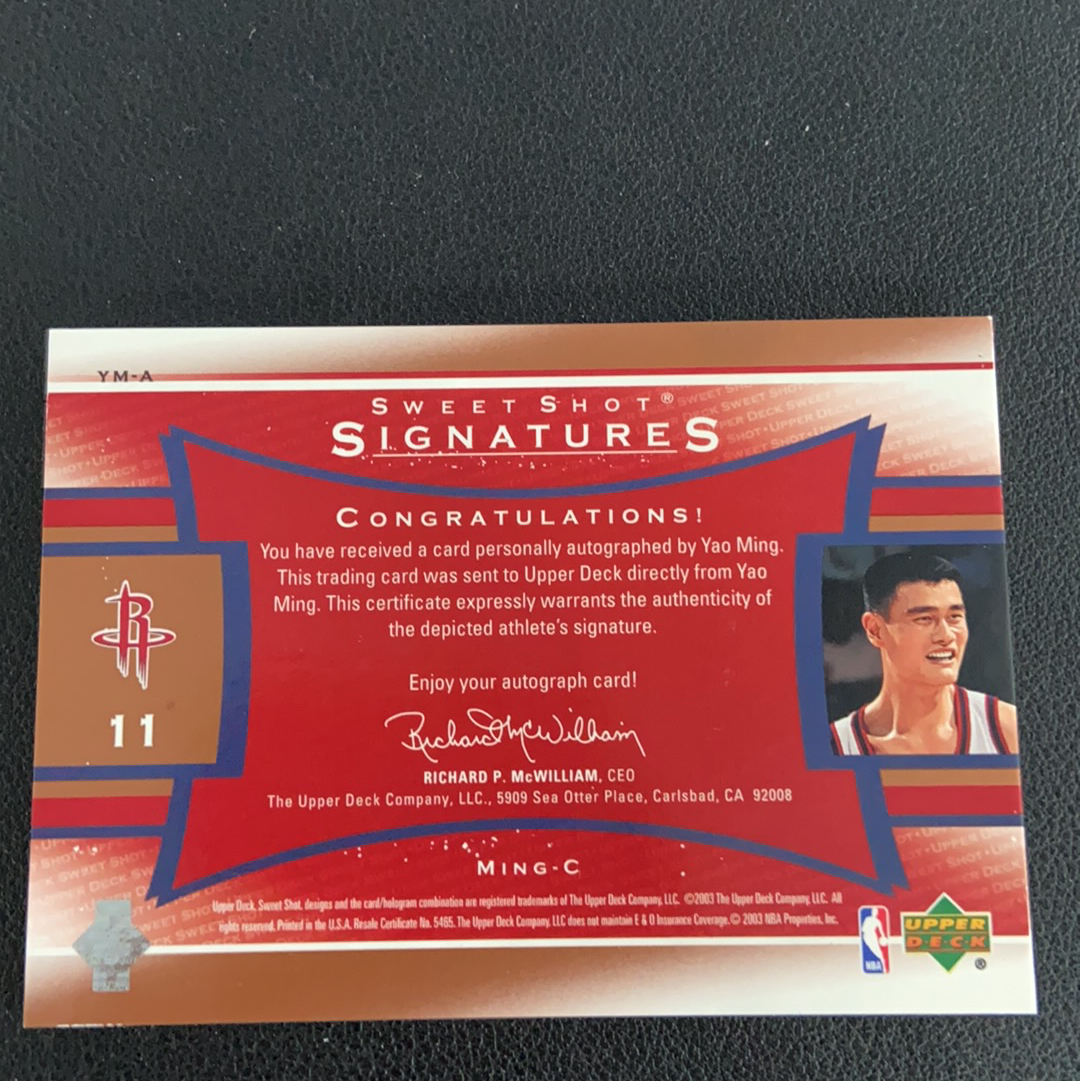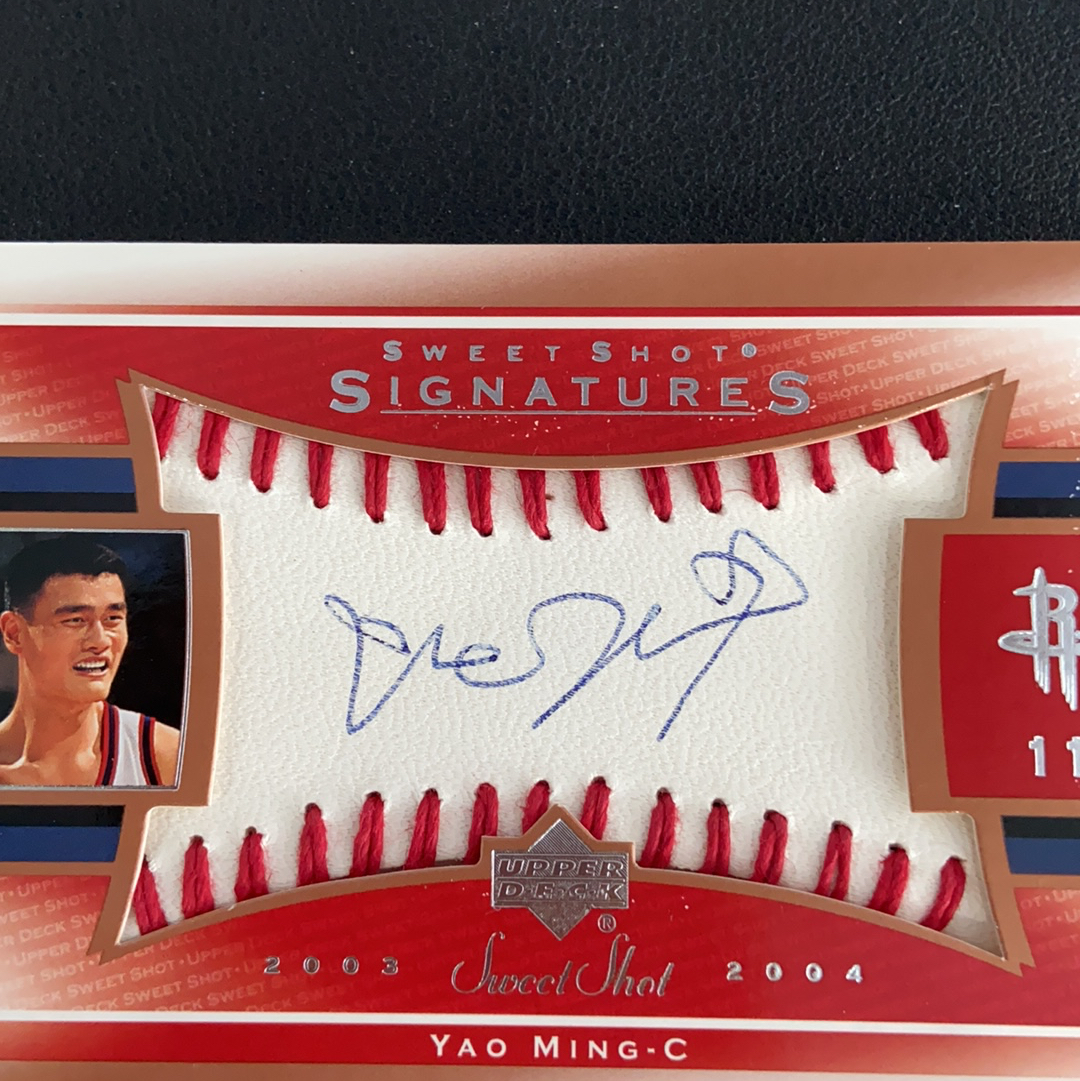 2003 Upper Deck Sweet Shot Yao Ming RC 新秀 姚明 签字 卡签 球皮签 实物 火箭 篮球 全明星 名人堂 火箭 边角轻微磨损 瑕疵如图