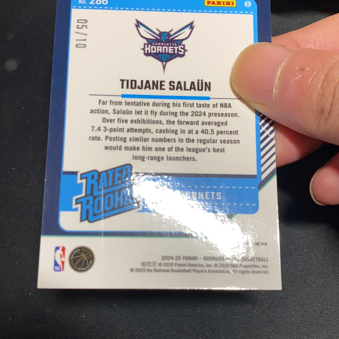 2024-25 Panini Optic Tidjane Salaun RC 黄蜂 新秀 提贾尼 萨隆 05/10编 圈圈折 金折 稀有 卡品如图 特