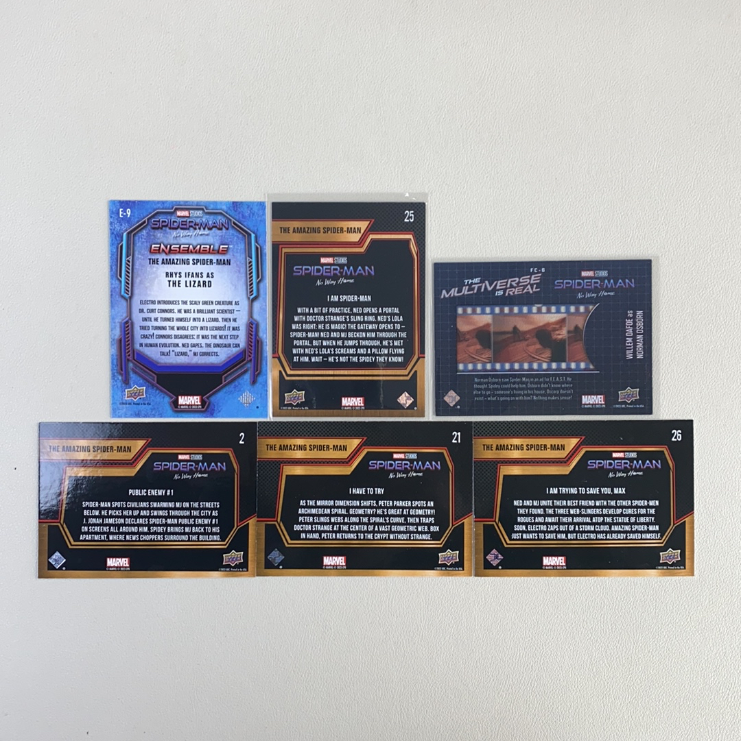 【弈卡代拍】2023 Upper Deck MARVEL漫威 SPIDER-MAN英雄无归 蜘蛛侠等 普卡 base 蓝平行 透明胶片特卡6张打包 品相如图 凑套必备 无理