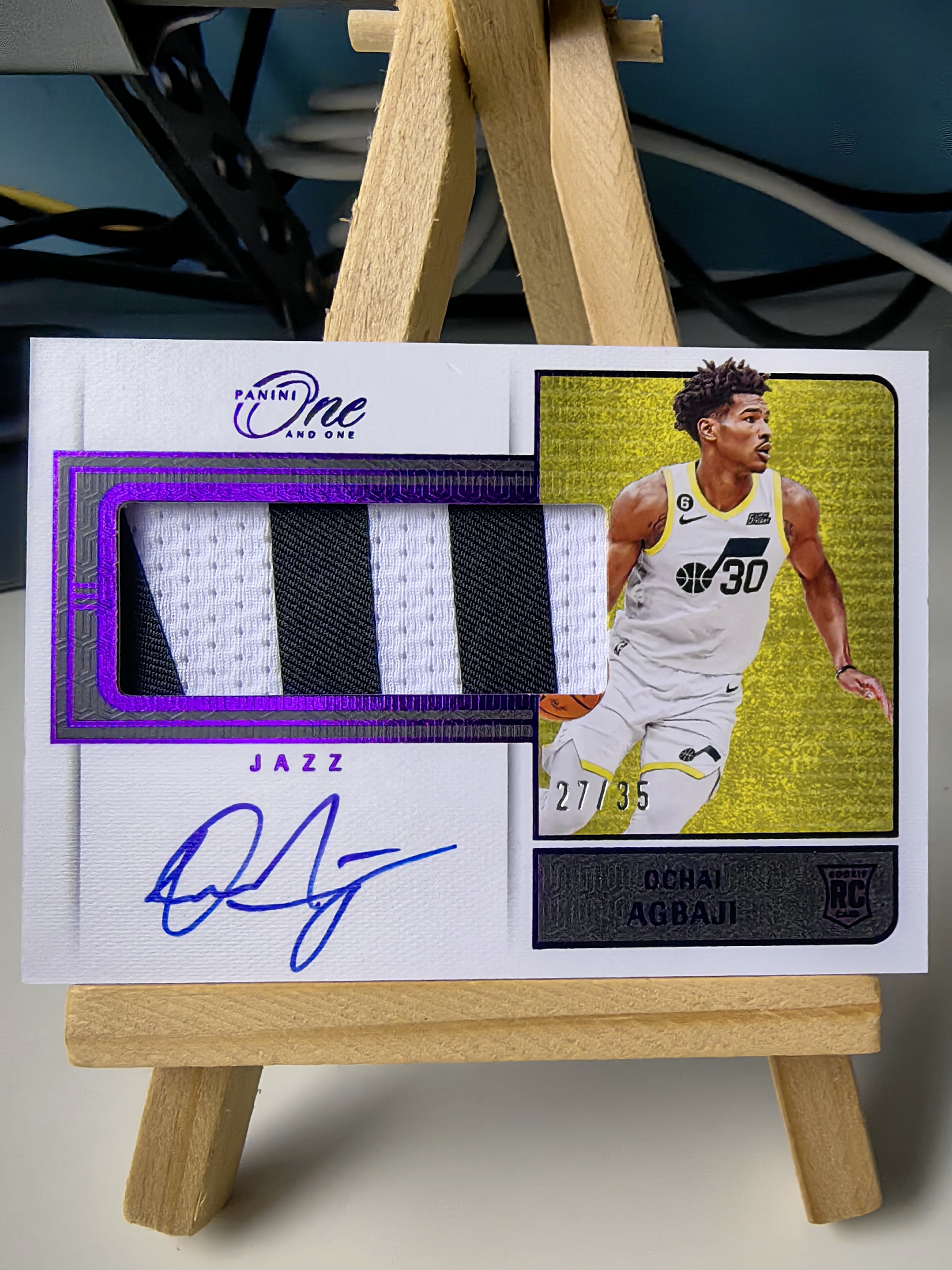 2022-23 Panini One and One Ochai Agbaji RC 爵士 新秀 阿巴基 猛龙 OAO 35编 RPA 紫平行 签字 卡签 暴力切割 Patch 球衣 物料 卡品精美