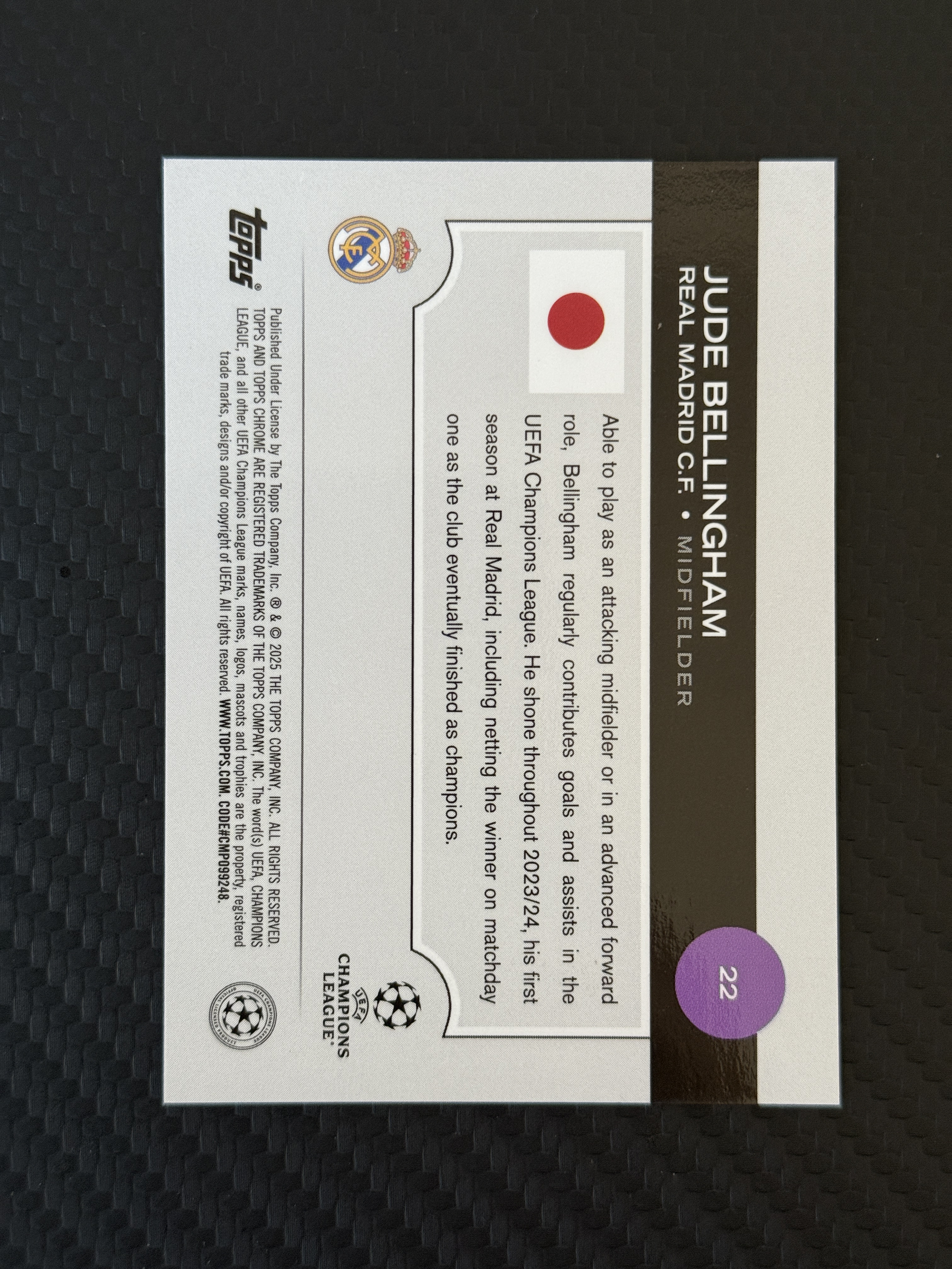 2024-25 Topps Chrome 日版 樱花 Japan Edition Jude Bellingham 【包来拍卖】150编 黄折 黄mojo 贝林厄姆 皇马 英格兰 卡品如图 叉叉