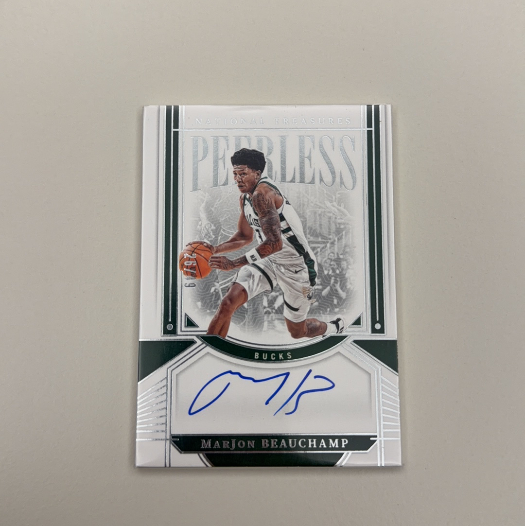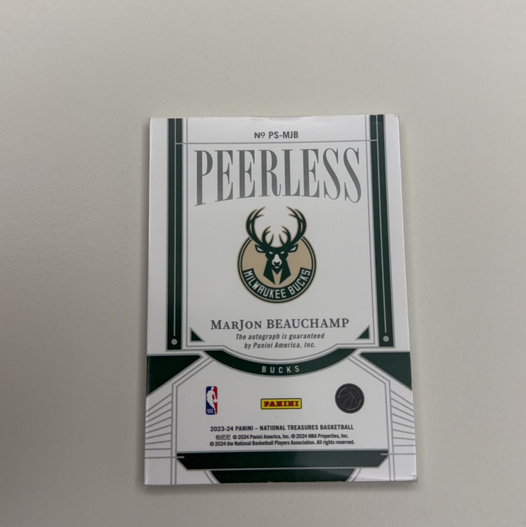 2023-24 Panini National Treasures MarJon Beauchamp 比彻姆 雄鹿潜力球员 26/49 编 卡签 国宝大系列 卡平如图 凑套收藏 完美