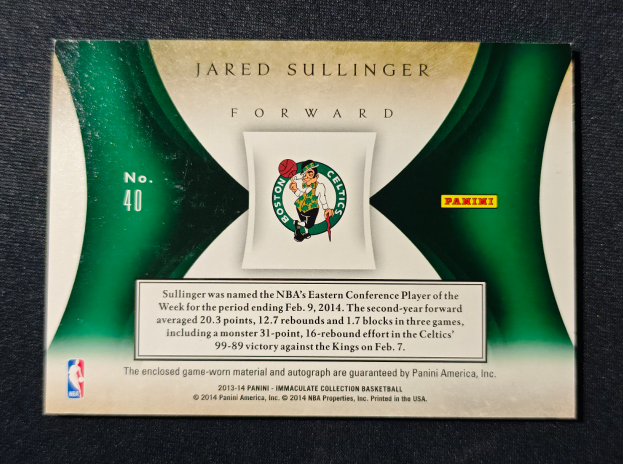 2013-14 Panini Immaculate Jared Sullinger Celtics 凯尔特人 贾里德 萨林杰 Premium Patches 大窗落场球衣PP签字 卡签PA/25编
