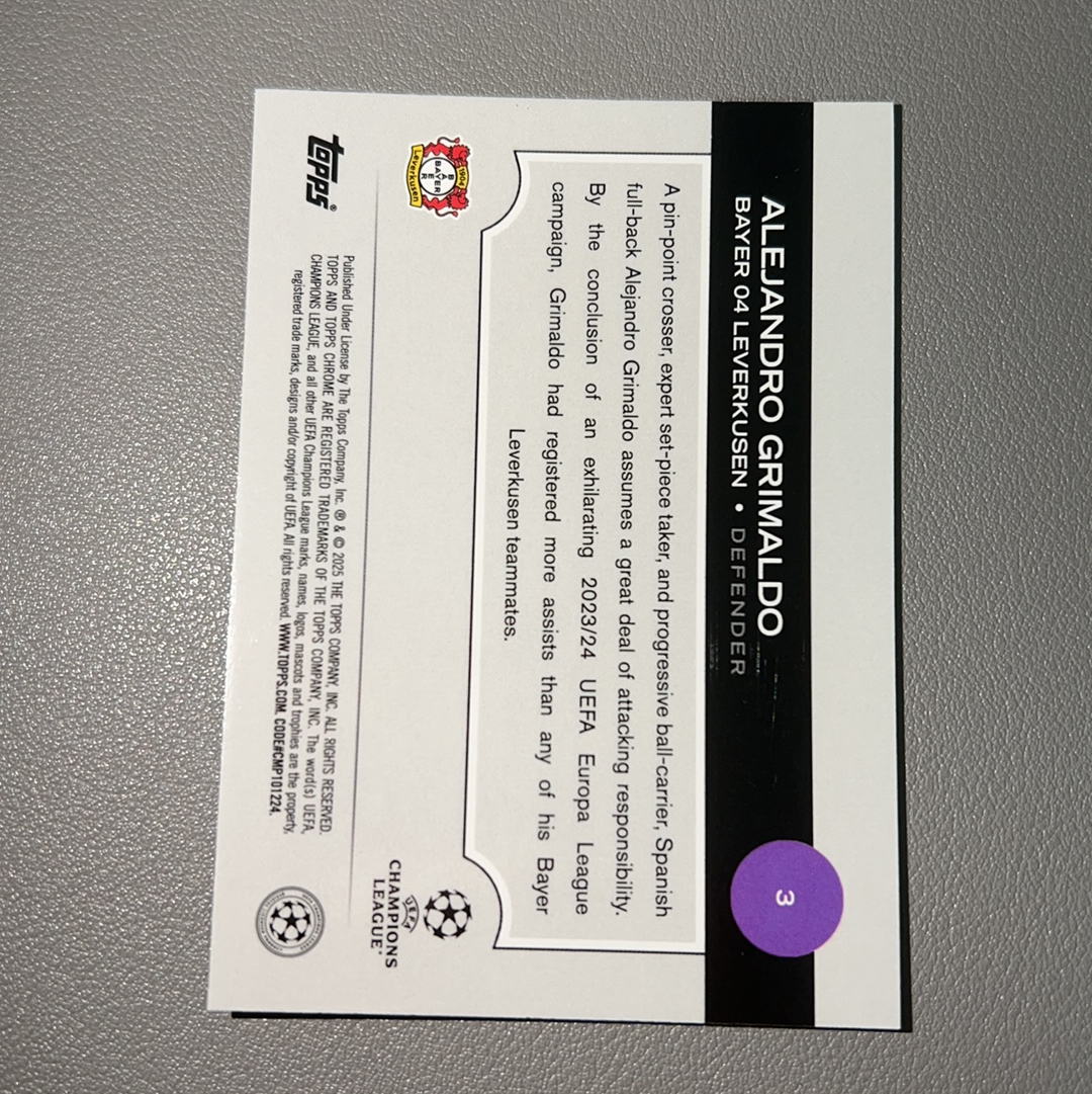 2024-25 Topps Chrome Alejandro Grimaldo 欧战 欧冠 TC 勒沃库森 格里马尔多 西班牙 199编 青折 绿折 状态火热 卡品如图 收藏必备