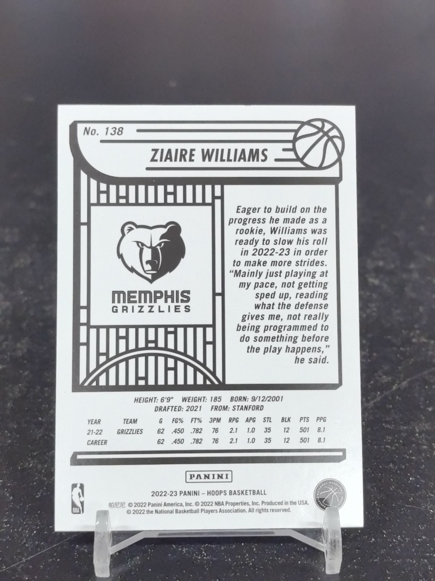 【浩行拍卖 截标预付82%】2022-23 PANINI hoops Ziaire Williams 灰熊 宰伊尔 扎伊尔 威廉姆斯 银折 折射 2/199编 专收必备 瑕疵看图「予茉」1117N03紋
