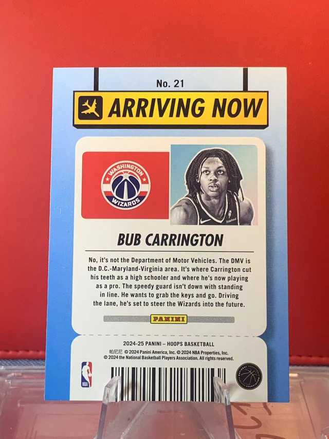 (老末精品代拍)2024-25 Panini Hoops Bub Carrington RC 奇才 新秀 鲍勃 卡尔顿 卡林顿 Arriving Now 到达特卡 base 顺丰寄付 免费代拍X8