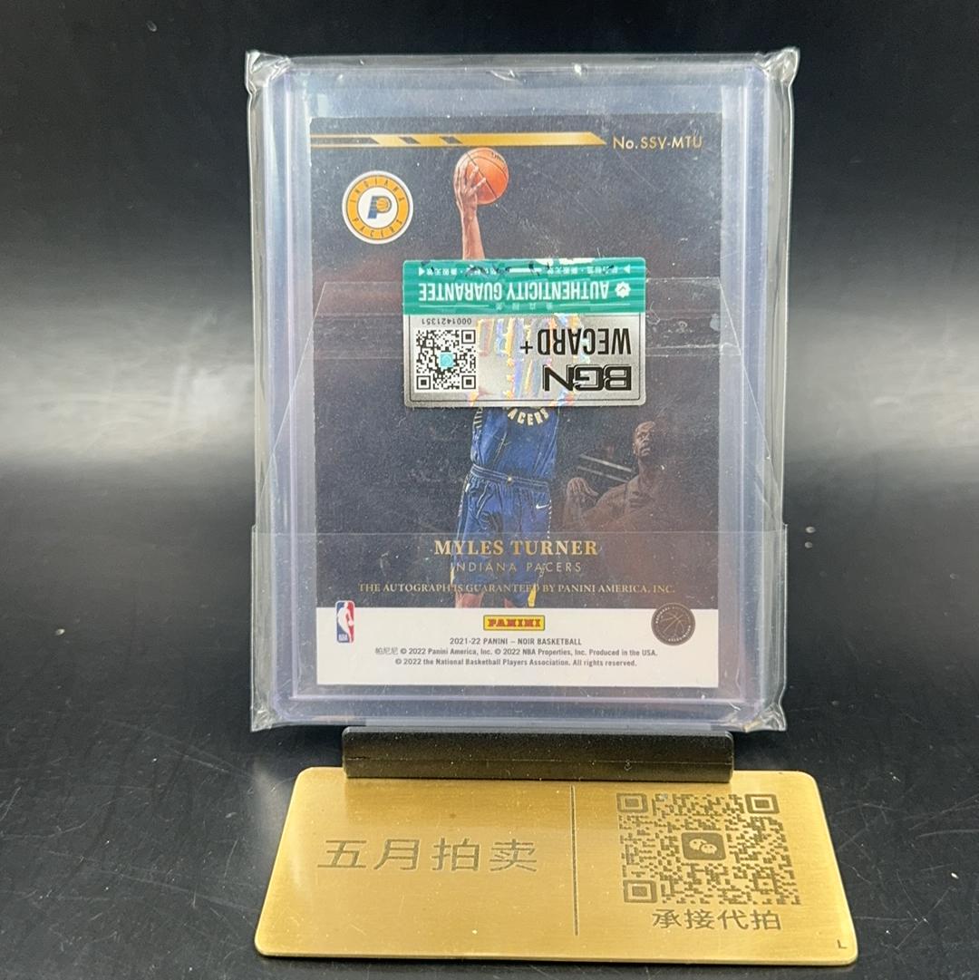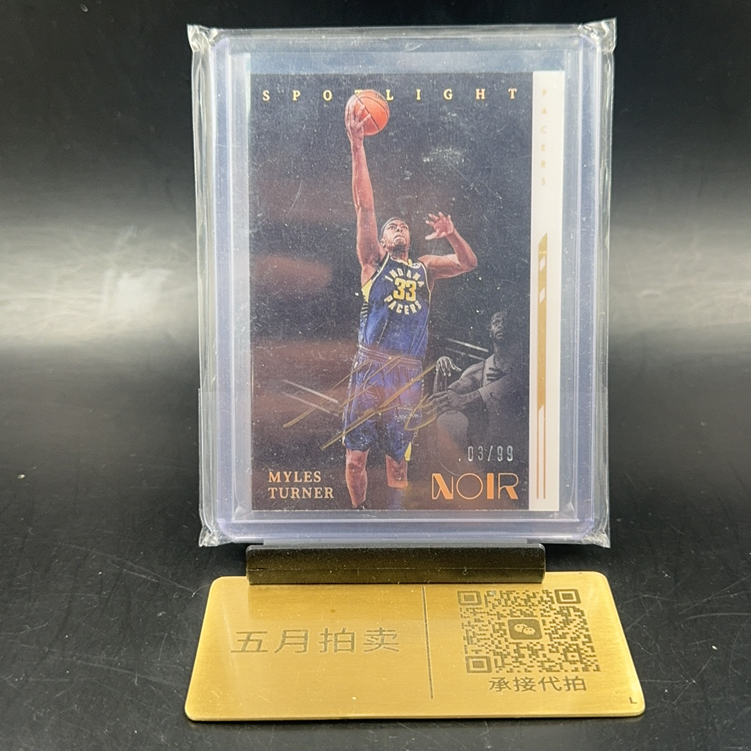 2021-22 Panini Noir Myles Turner 【五月拍卖 顺丰空运】诺尔 步行者 迈尔斯 特纳 99编 聚光灯 金笔签 卡签 签字 bgn鉴真 微瑕如图 LHY t84