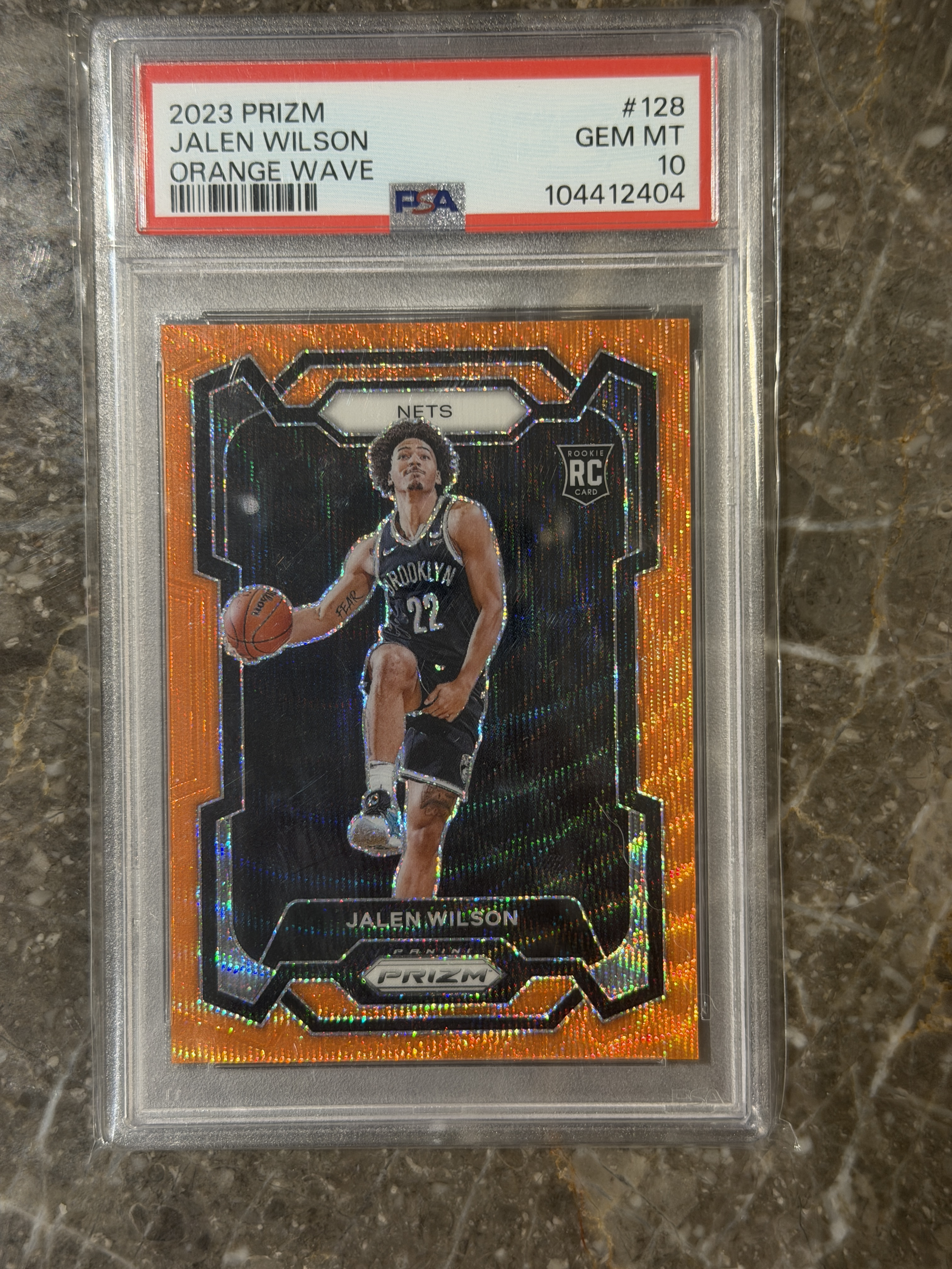 2023-24 Panini Prizm Jalen Wilson RC PZ 杰伦 威尔逊 篮网 新秀 折射 波纹折 橙波纹 57/60编 PSA10 评级卡
