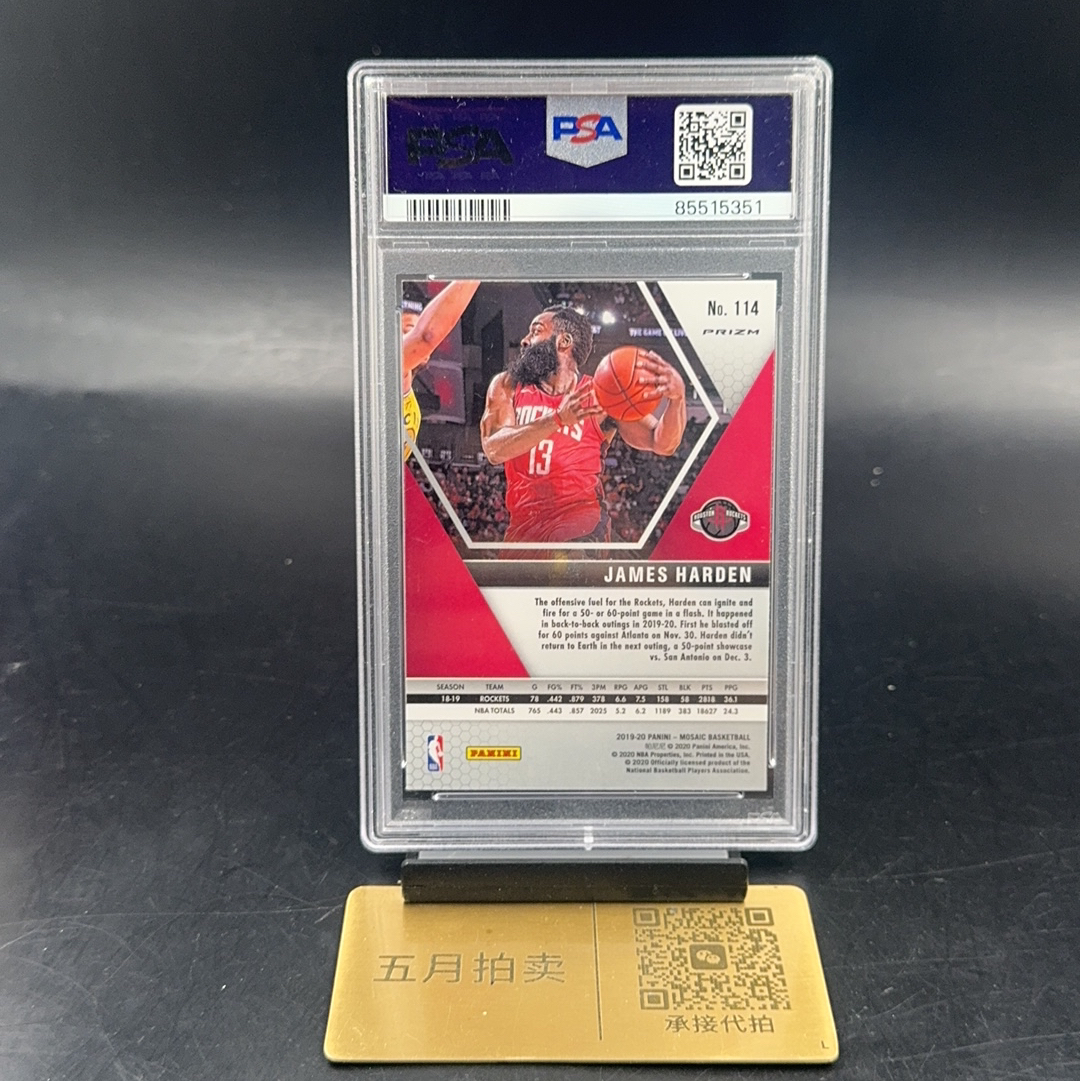 2019 Panini Mosaic James Harden 【五月拍卖 顺丰空运】马赛克 火箭 詹姆斯 哈登 银折 折射 PSA10 满分评级 卡品如图 小郝t91