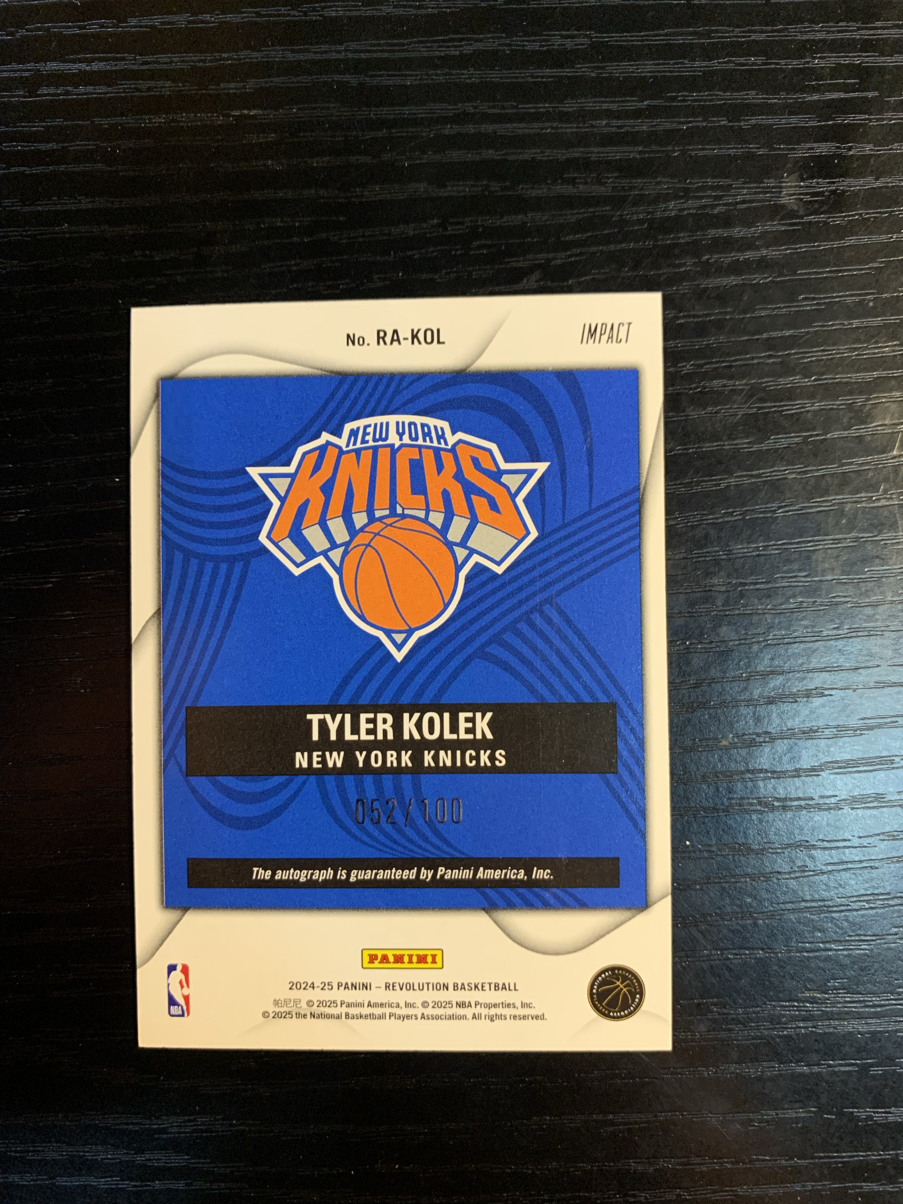 2024-25 PANINI REVOLUTION TYLER KOLEK 泰勒 科勒克 新秀 RC 签字 革命 爆炸折 尼克斯 篮球 52/100编 专收必备 南风