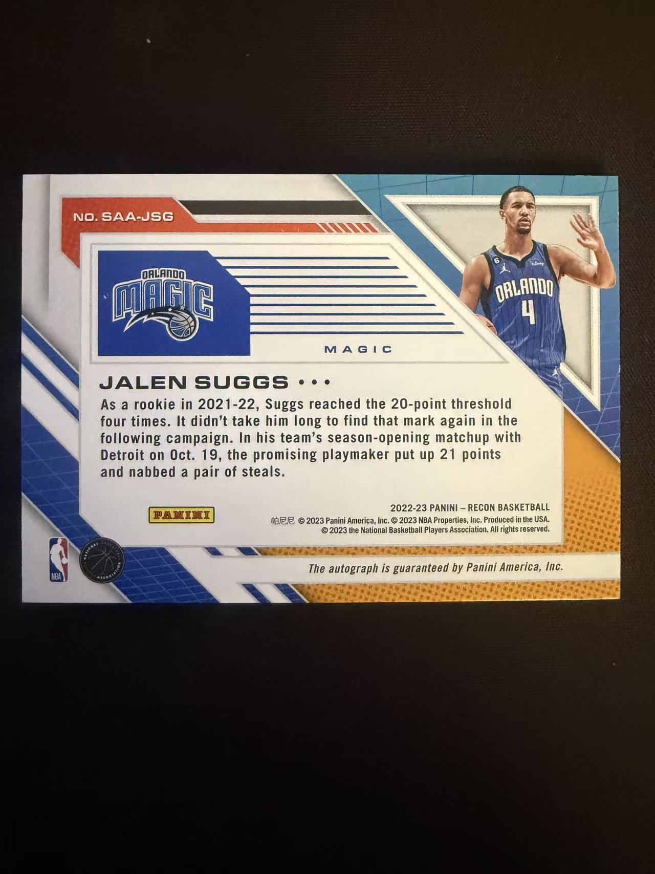2022-23 Panini Recon Jalen Suggs 【大锦拍卖】魔术 杰伦 萨格斯 Recon 01/10编 首编 金笔签 大窗 沙盒 镜面 签字 卡签 卡品如图(世界)