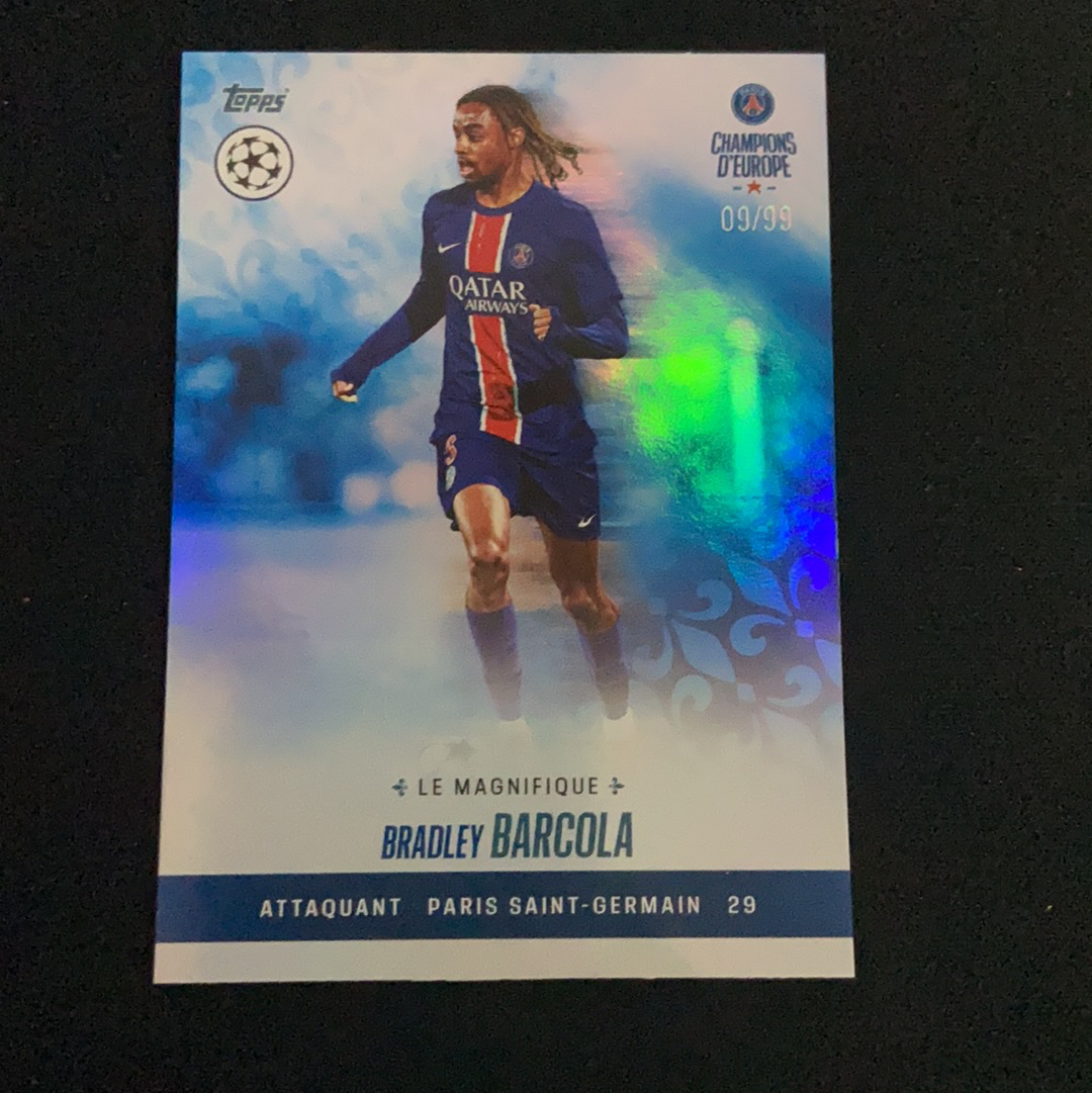 2025 Topps UEFA Champions League Bradley Barcola 巴黎冠军盒 巴尔科拉 法国 边路爆点 球风华丽 99编 卡品如图 大魔王