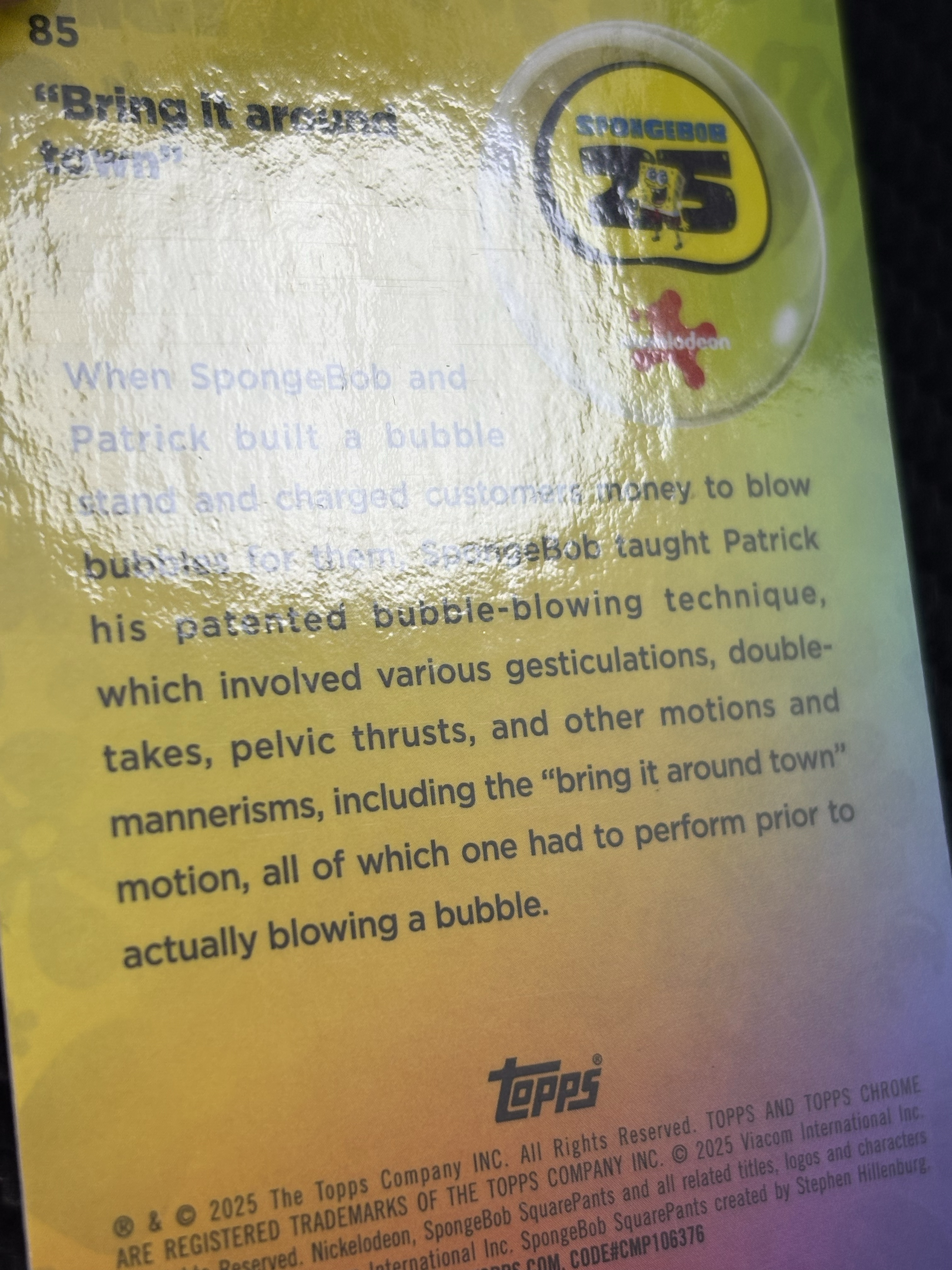 【面包拍卖】 2025 Topps SpongeBob SquarePants Chrome 海绵宝宝 TC 25周年 60/75编 青波纹折 折射 海绵宝宝 比奇堡 瑕疵看图 鹏哥