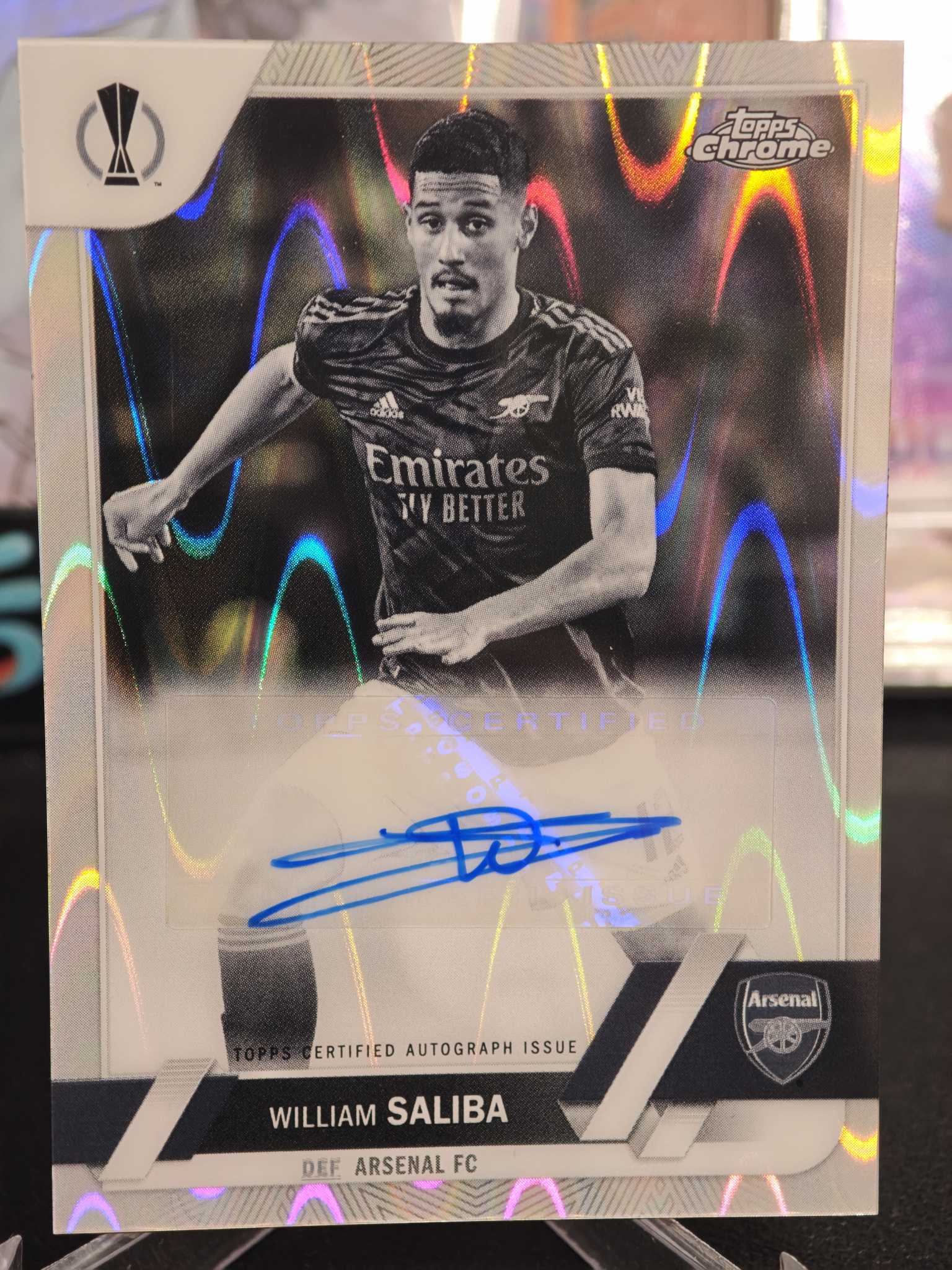 2023 Topps Chrome William Saliba [隔天不合并] 🇫🇷 阿森纳 Arsenal 黑白波纹折 签字 萨利巴 字迹清晰 姆巴佩队友 枪手 实卡拍摄 下拍前仔细阅读商品描述