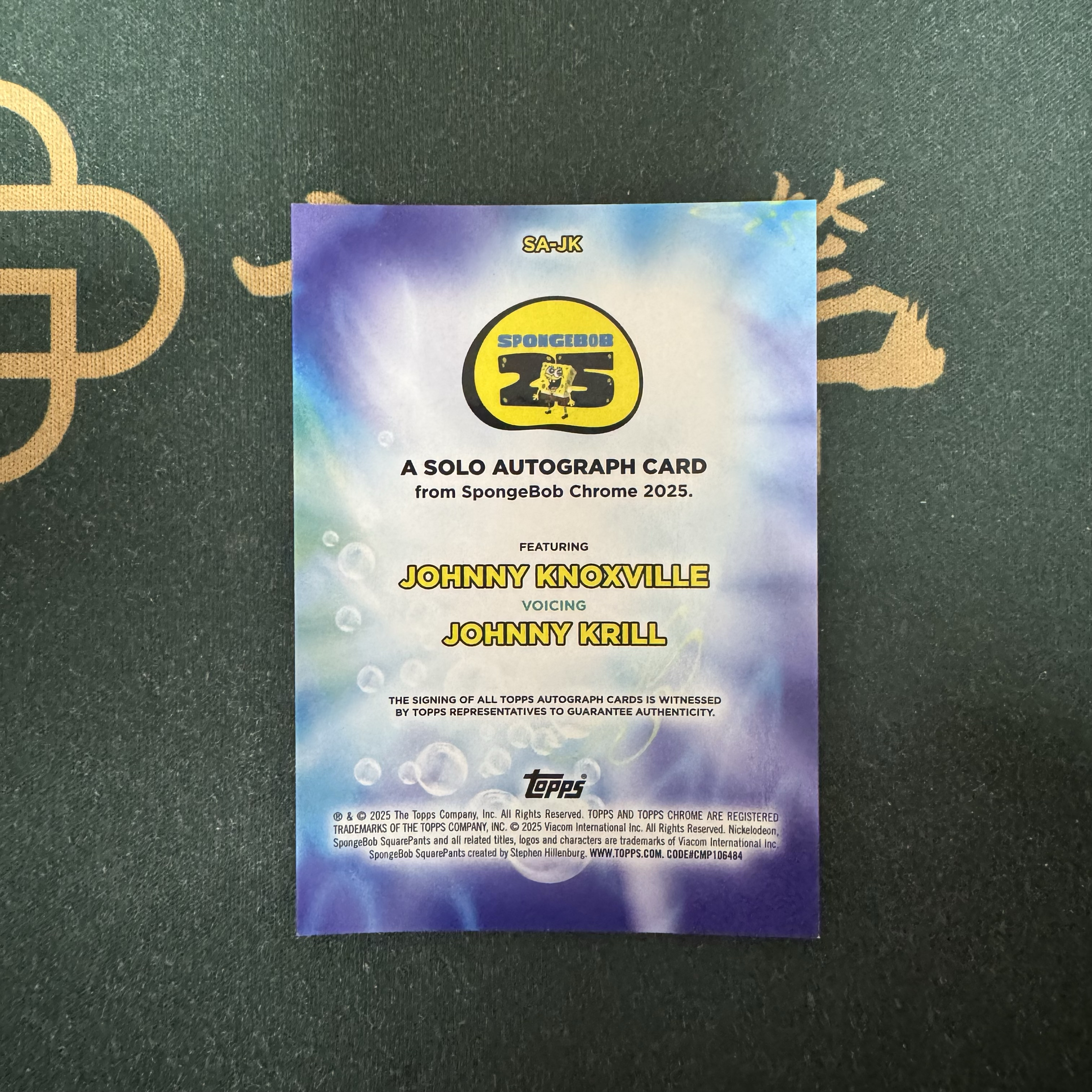 2025 Topps SpongeBob SquarePants 海绵宝宝 【十三笔】25周年 蓝宝石 Johnny Knoxville约翰尼诺克斯维尔 配音演员 签字签名 碎冰折 卡品如图(YY)2