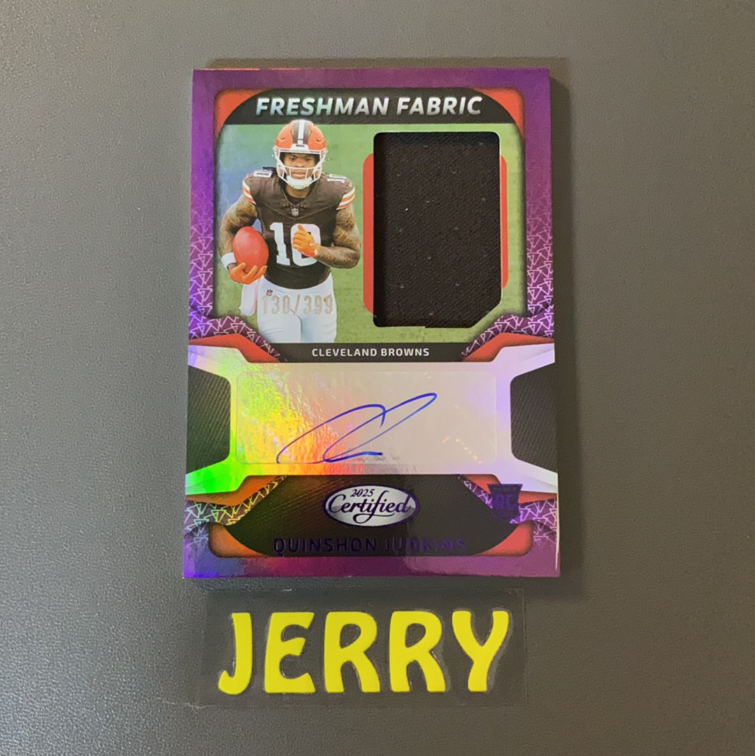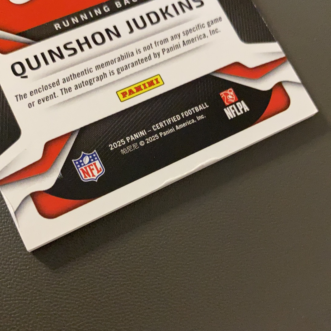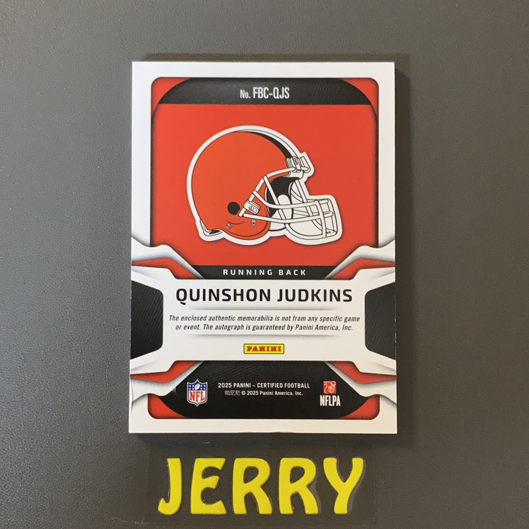 2025-26 Panini Certified Quinshon Judkins RC NFL 橄榄球 卫生巾 克利夫兰布朗 昆西恩 贾金斯 新秀 130/399编 签字 球衣 物料 签名【陈先生】