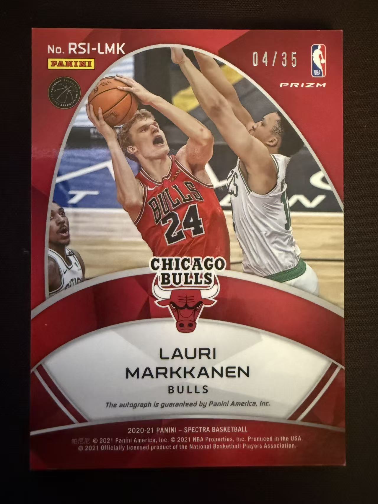 2020-21 Panini Spectra Lauri Markkanen 【大锦拍卖】公牛 劳里 马尔卡宁 光谱 04/35编 脉冲折 折射 签字 贴签 卡品如图(世界)