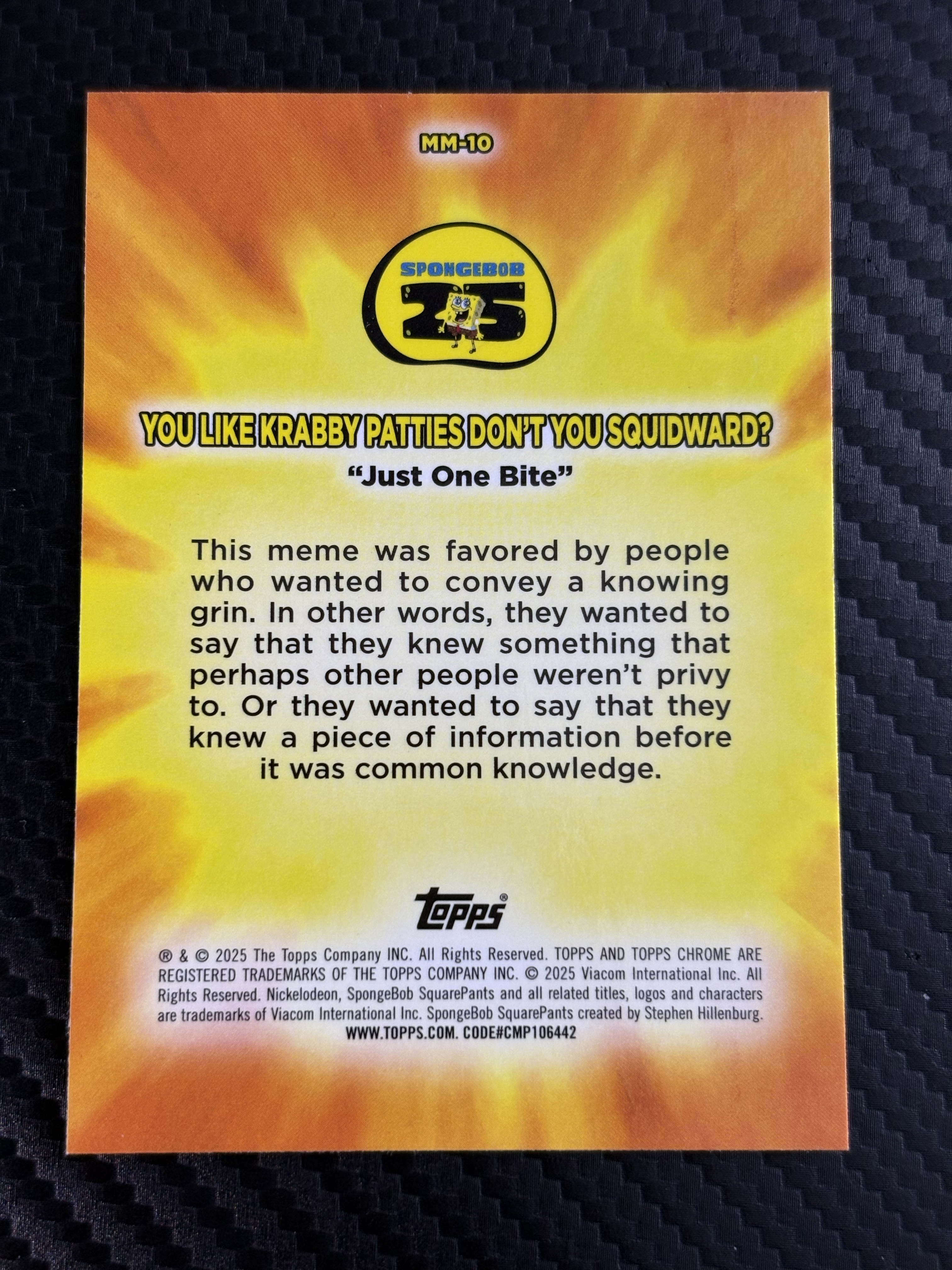 【面包拍卖】 2025 Topps SpongeBob SquarePants Chrome 海绵宝宝 25周年 25th MASTERFUL MEMES 精彩梗图特卡海绵宝宝 派大星 瑕疵如图 鹏哥