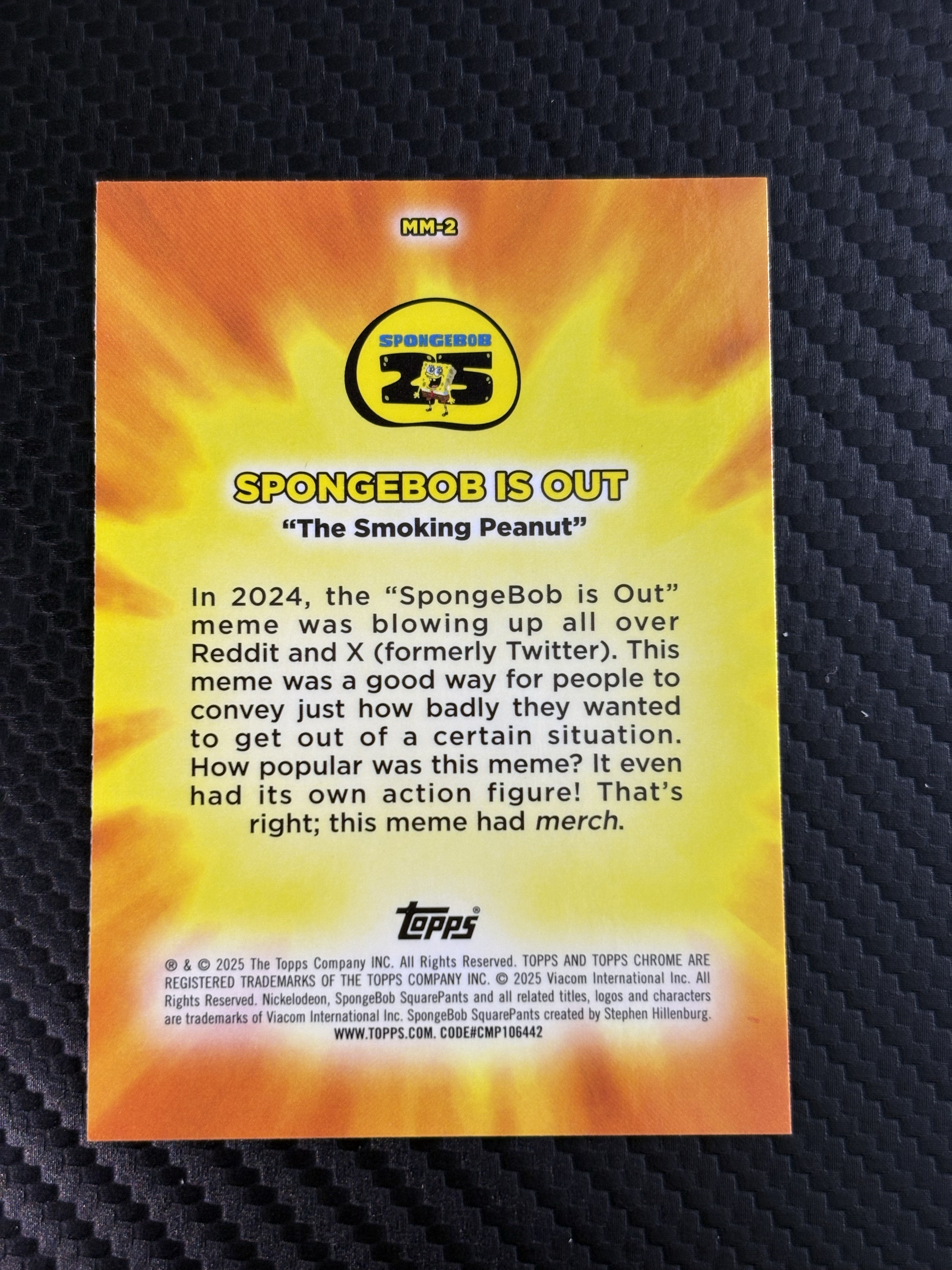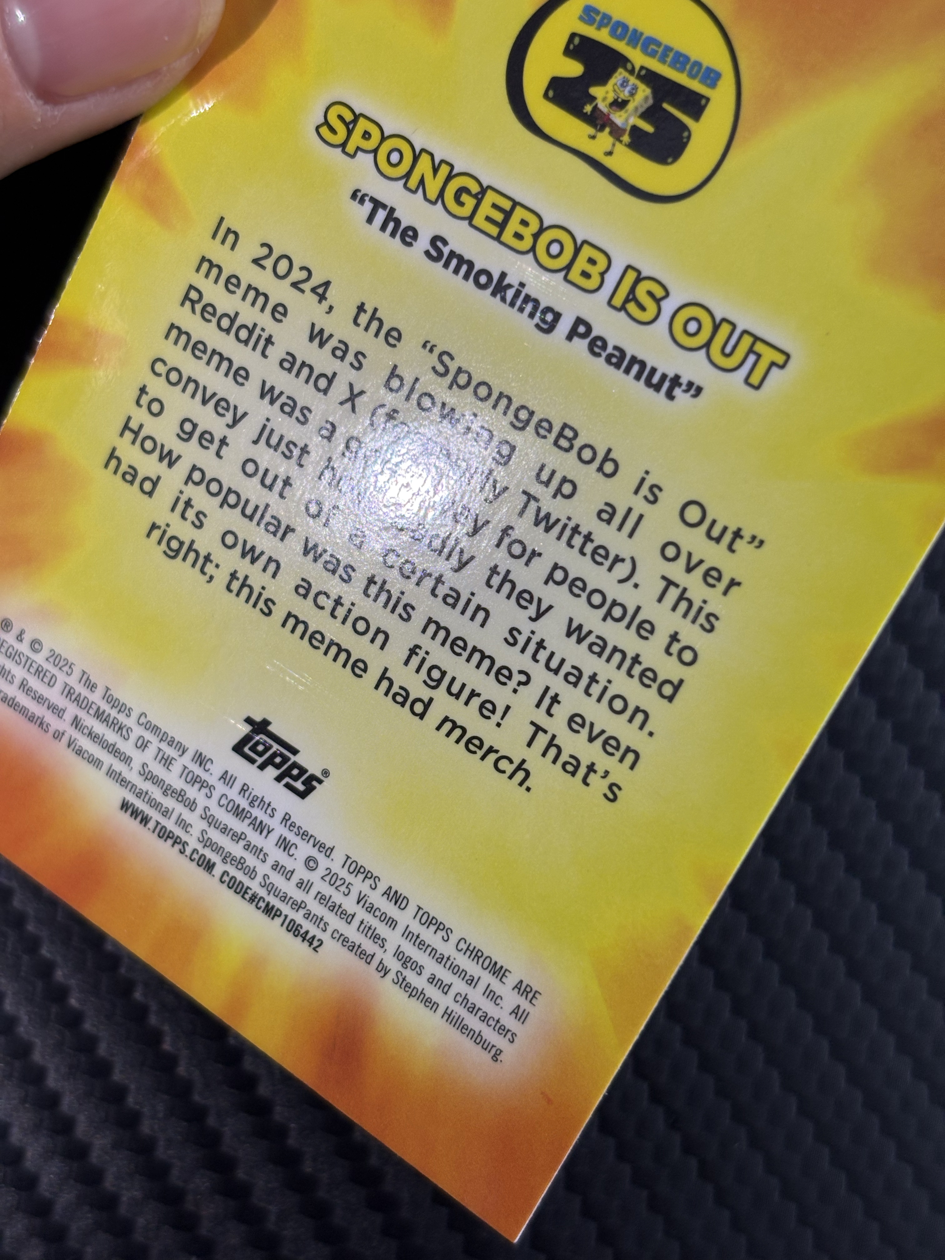 【面包拍卖】 2025 Topps SpongeBob SquarePants Chrome 海绵宝宝 25周年 25th MASTERFUL MEMES 精彩梗图特卡海绵宝宝 瑕疵如图 鹏哥