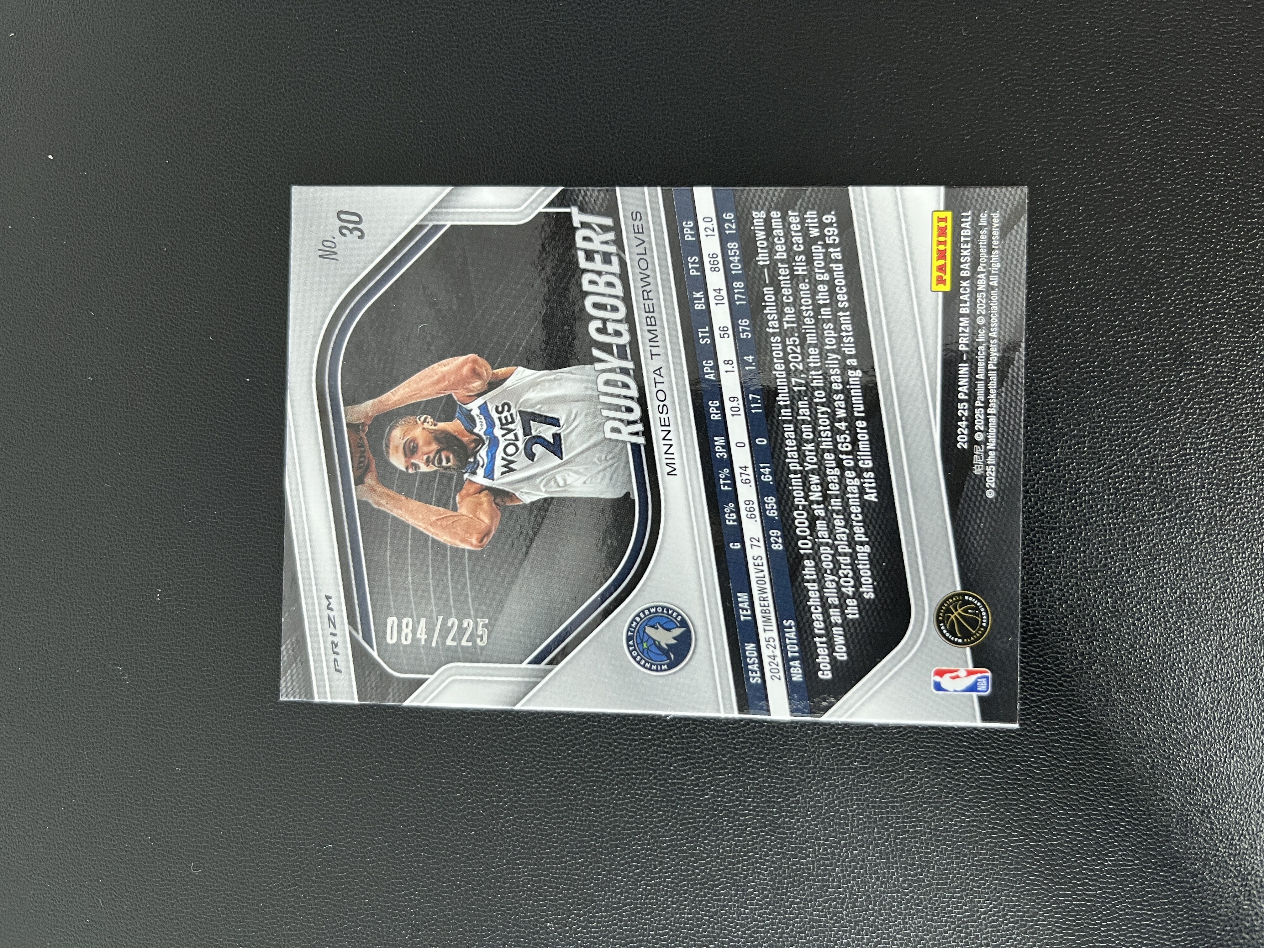 2024-25 Panini Prizm Black Rudy Gobert 【禄卡拍卖】PZ 鲁迪 戈贝尔 球皮橙折 225编 森林狼 11.11-haoran-Z02
