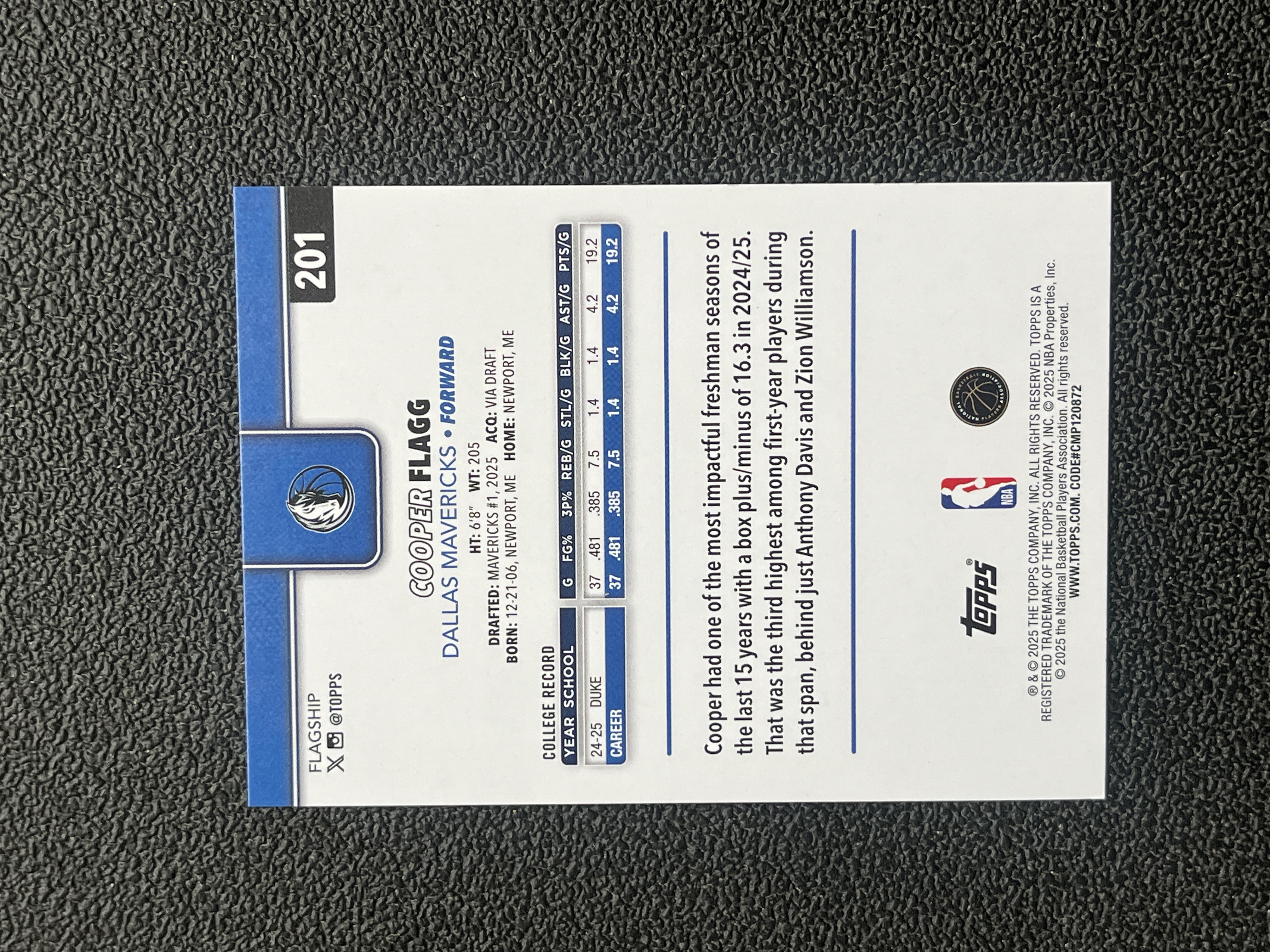 2025 Topps Topps Cooper Flagg RC 【艾比拍卖】独行侠 大热状元 库珀弗拉格 NBA旗舰 正新秀 Base 专收必备 卡品如图 丹总