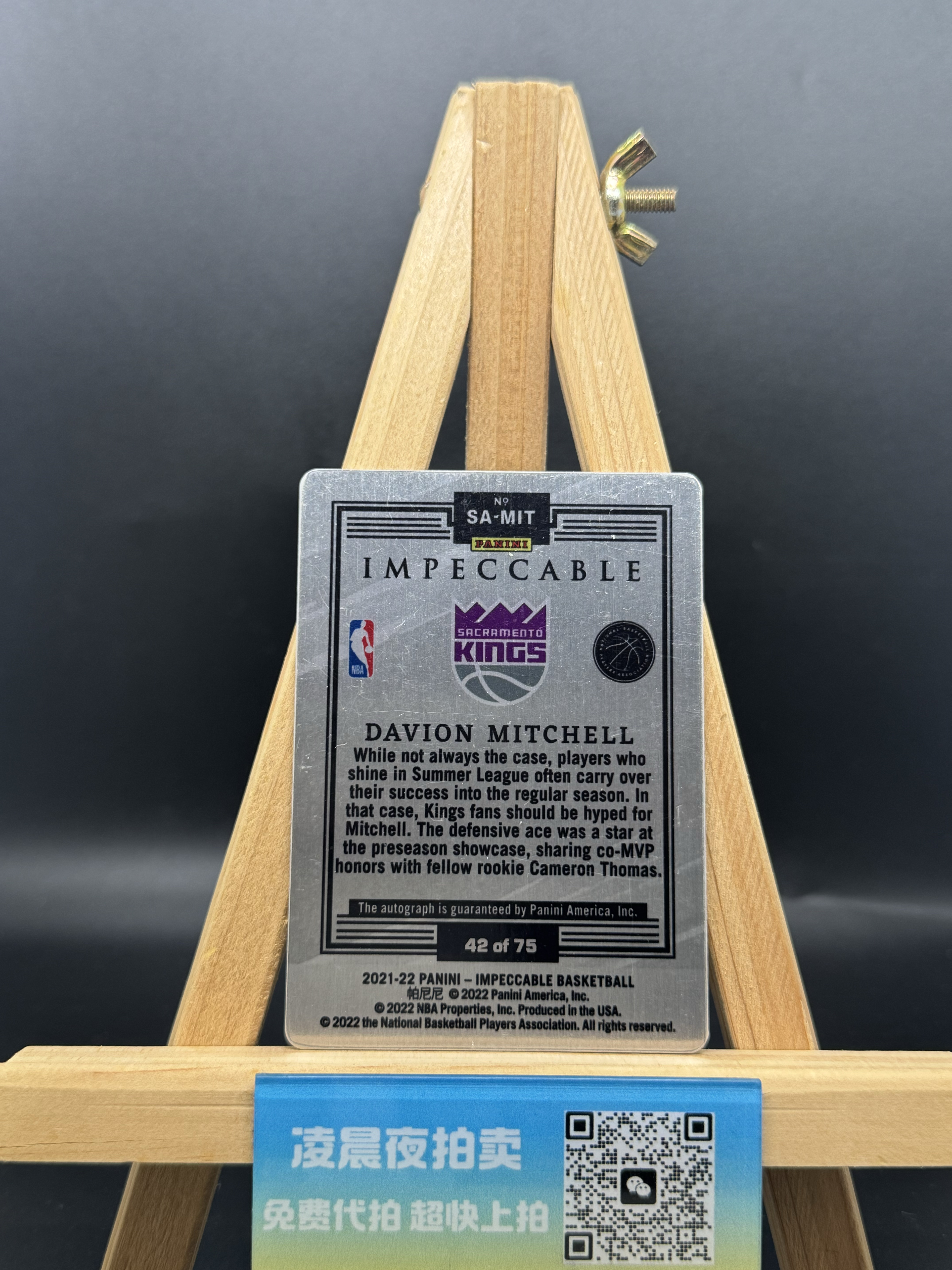 【凌晨夜免费代卖】2021-22 Panini Impeccable Davion Mitchell 小真金 国王 戴维恩 多诺万 米切尔 新秀RC 铁板签 签字 卡签 75编 小米球【CY】