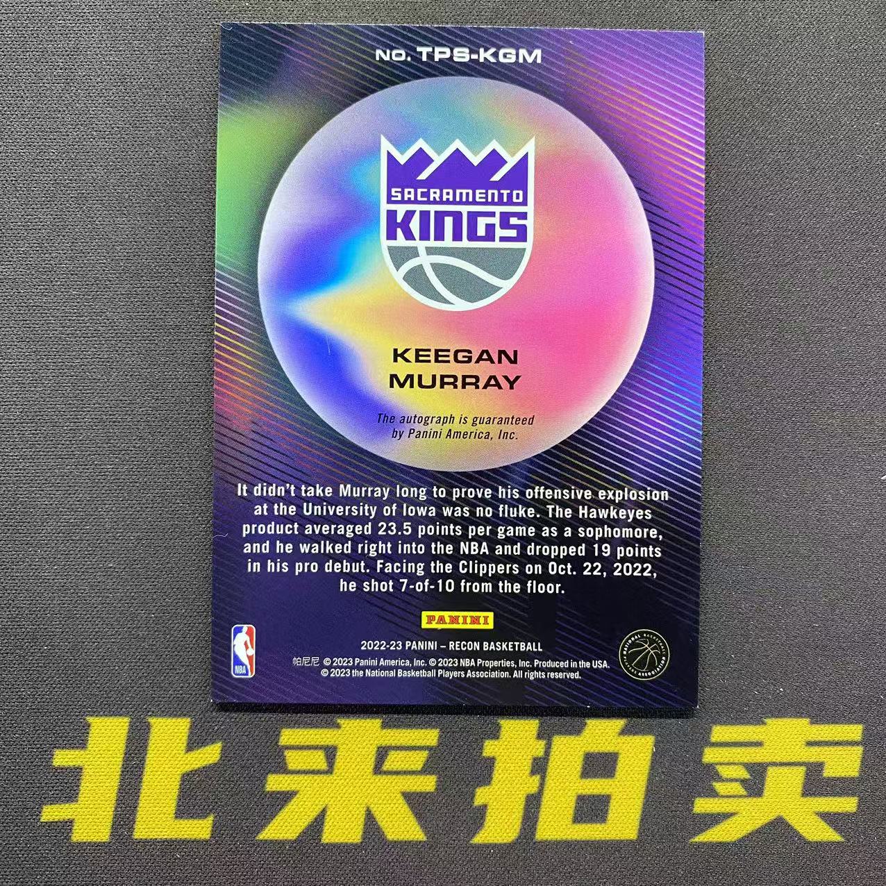【北来拍卖】2022-23 PANINI RECON Keegan Murray RC 基根 默里 穆雷 国王 新秀 True Potential 签字 折射 49编 瑕疵如图 W1【成成】164#