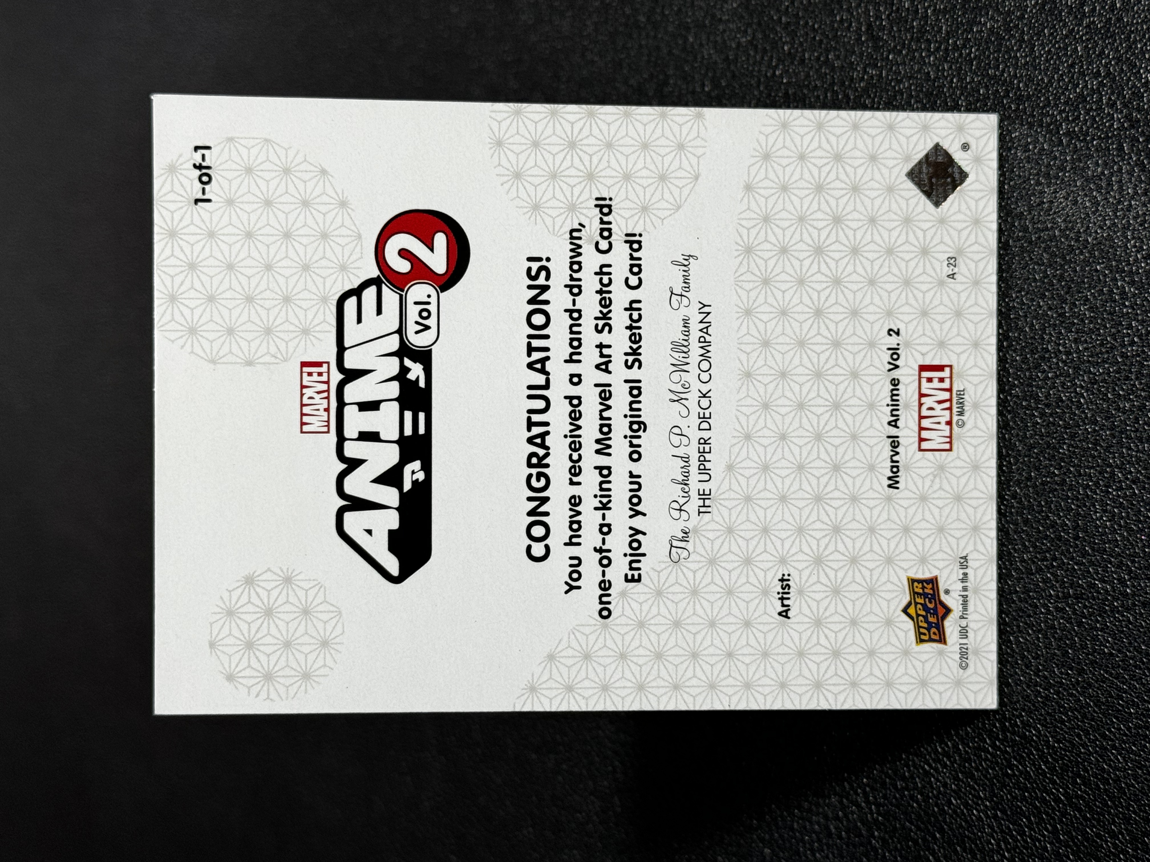 2023 Upper Deck Marvel (MCU) Anime2 漫威 桃桃子2 AP 手绘卡 1/1 1of1 ARTIST SKETCH CARD 空白底卡 LWLP