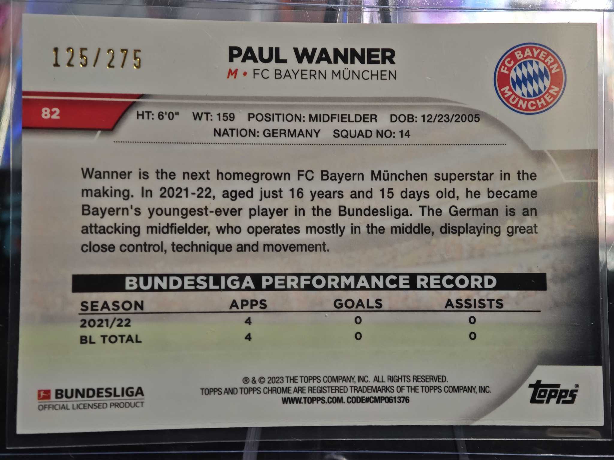 2023 Topps Chrome Paul Wanner [隔天不合并]🇩🇪 拜仁慕尼黑 275编 保罗万纳 荷甲 埃因霍温 🇳🇱 PSV 实卡拍摄 下拍前仔细阅读商品描述