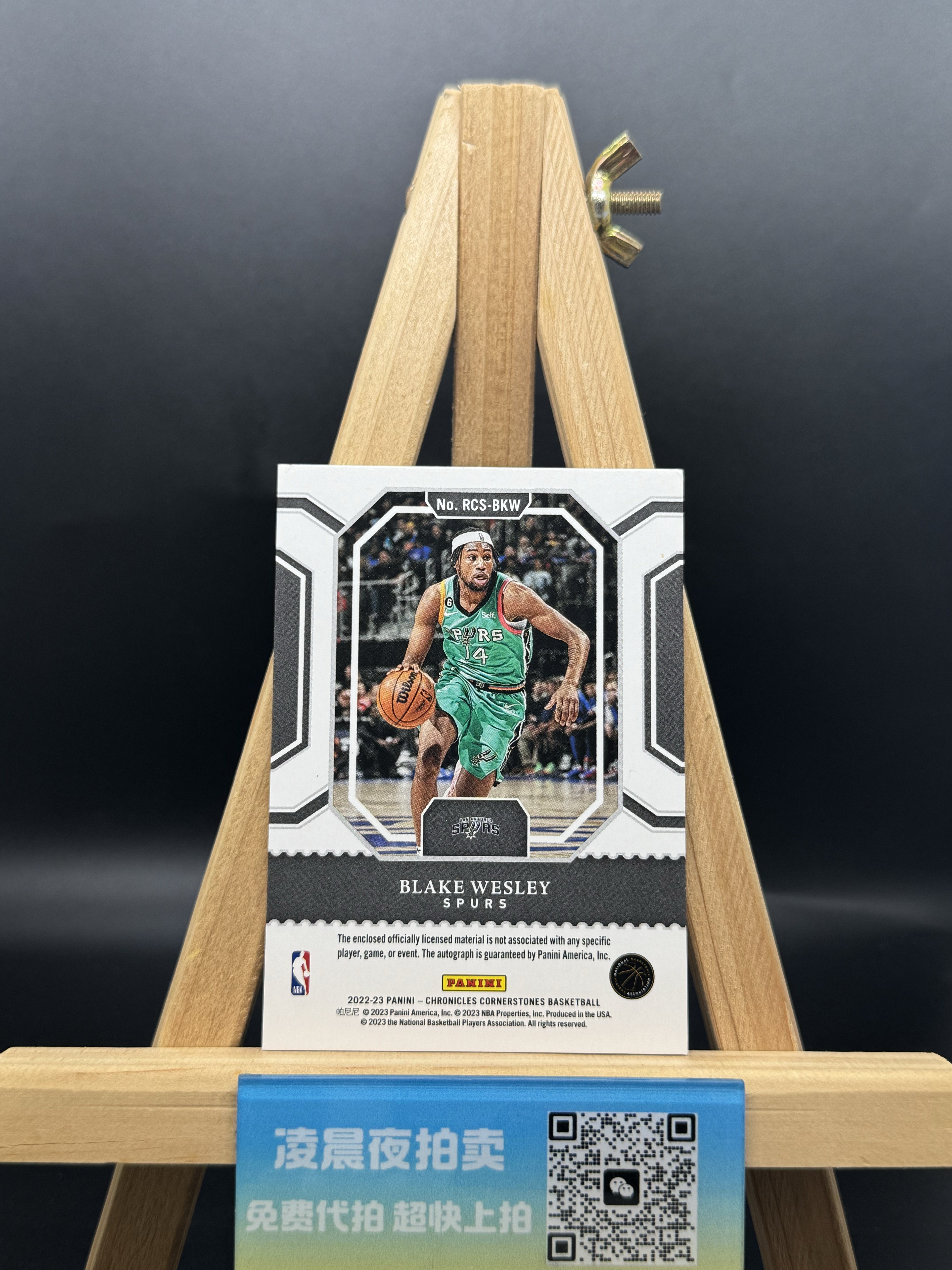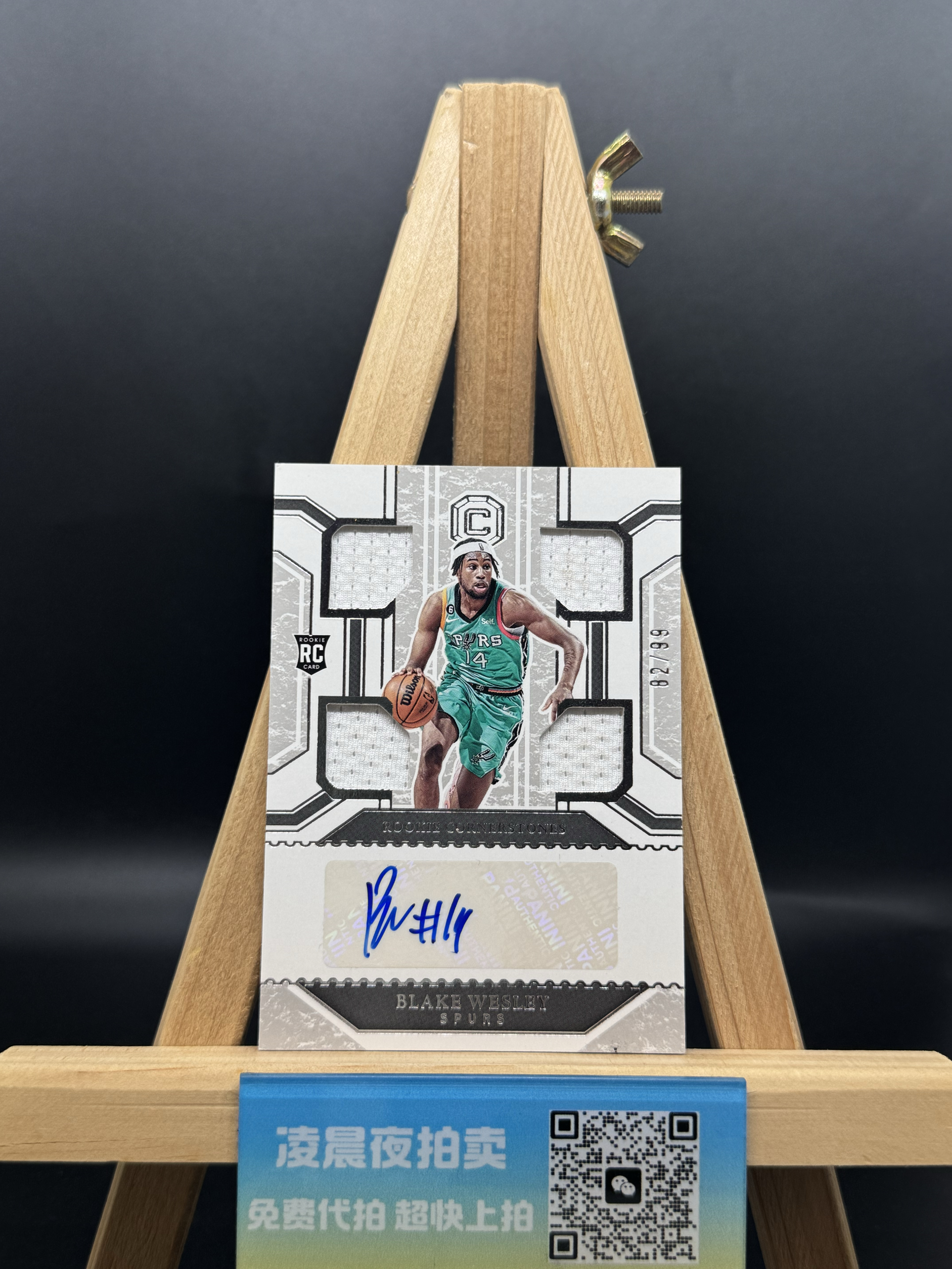 【凌晨夜免费代卖】2022-23 Panini Chronicles Blake Wesley 编年史 大理石 马刺 布雷克 韦斯利 新秀RC /99编 四窗RJA 球衣物料签字 【CY】