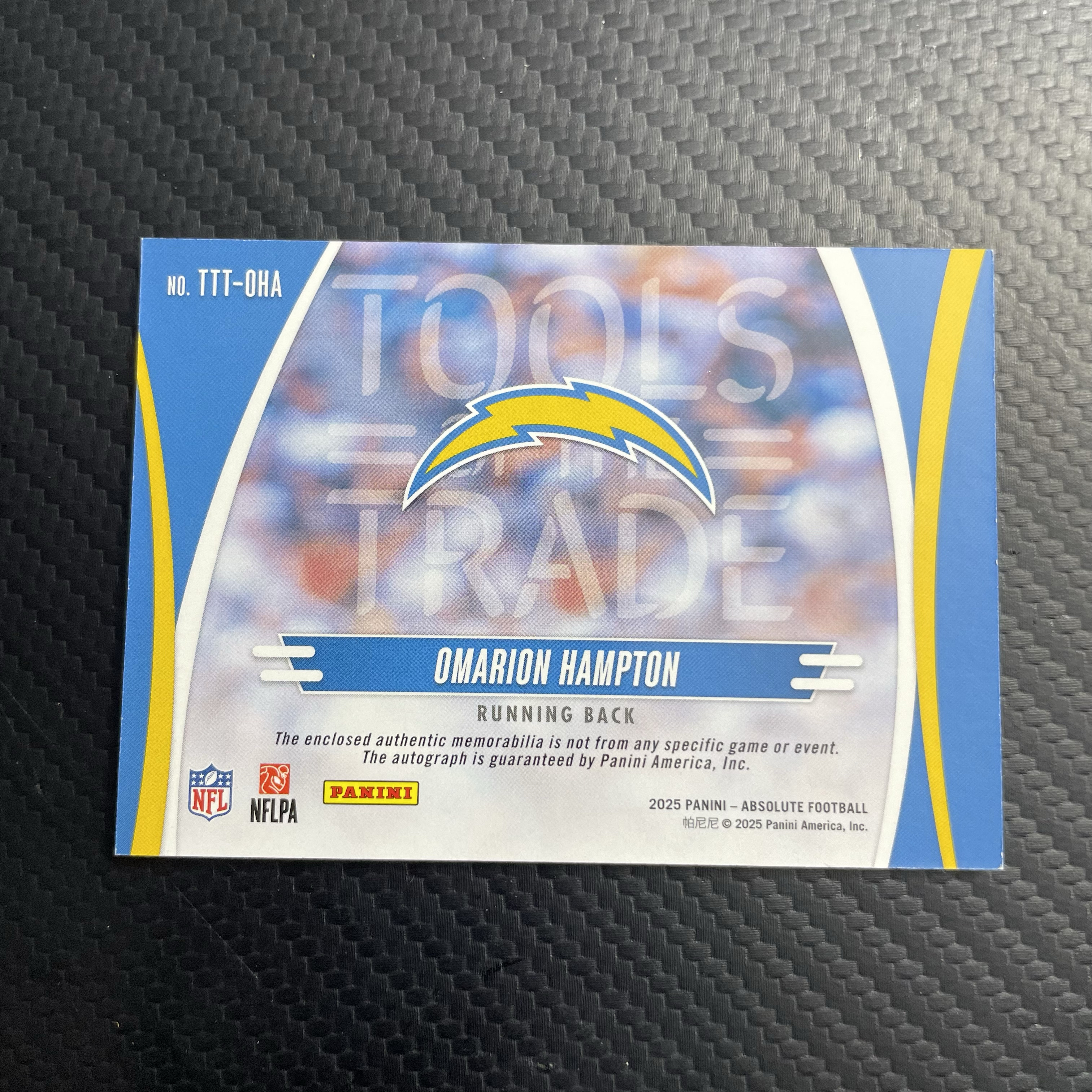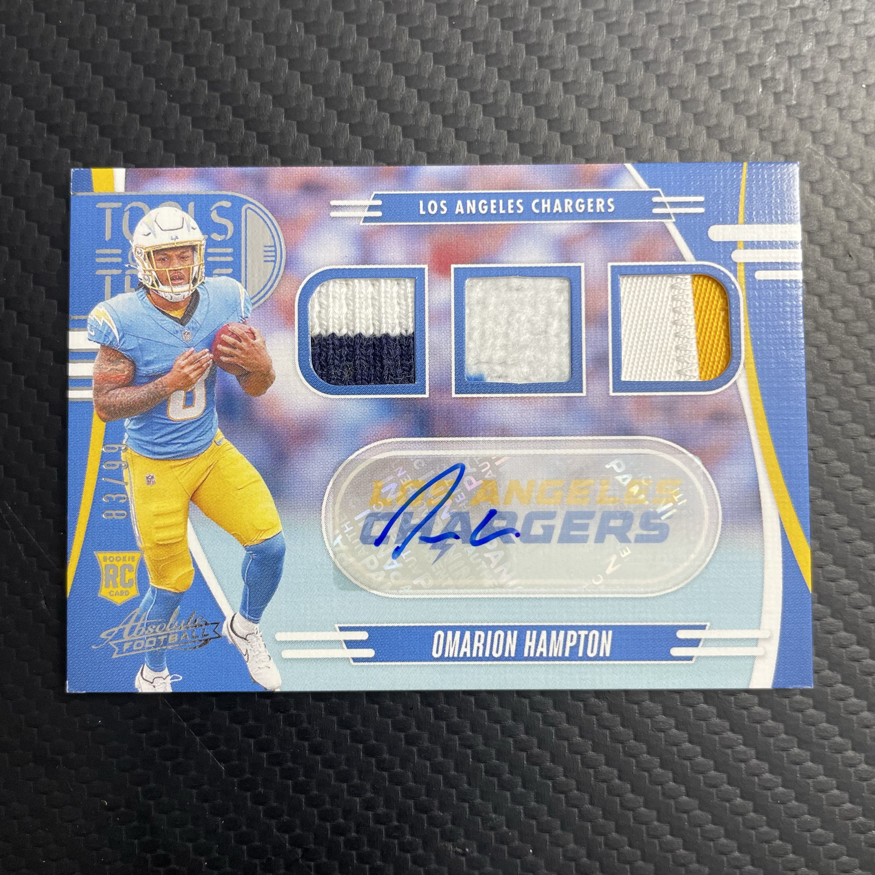 【面包拍卖】 2025 Absolute NFL 橄榄球 洛杉矶闪电 Omarion Hampton 奥马里昂 汉普顿 新秀 83/99编 签字 三色patch 物料 瑕疵如图 鹏哥