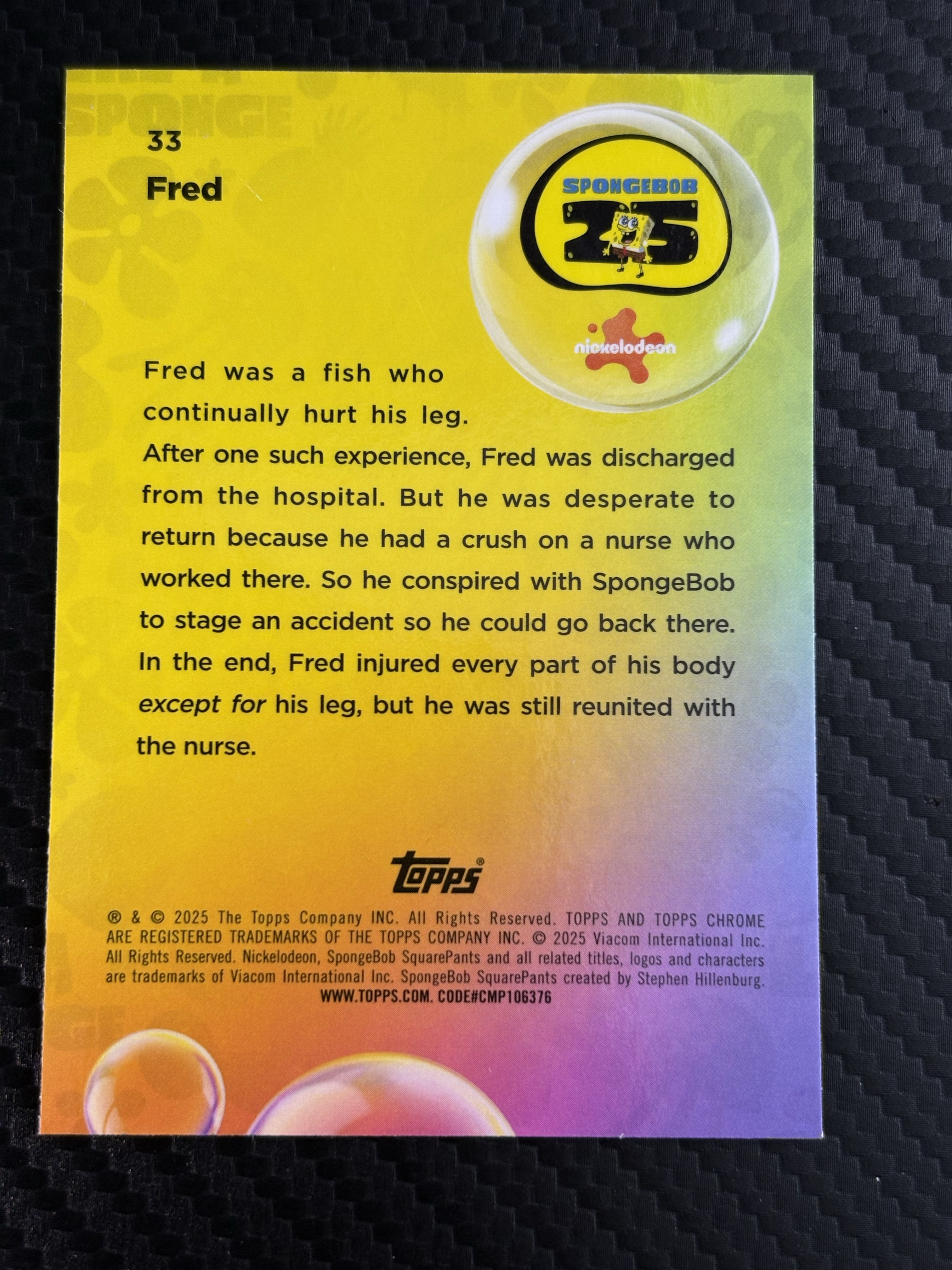 【面包拍卖】 2025 Topps Chrome Spongebob Squarepants 海绵宝宝25周年系列 海绵宝宝 弗雷德 蓝折 60/99编 瑕疵如图 鹏哥