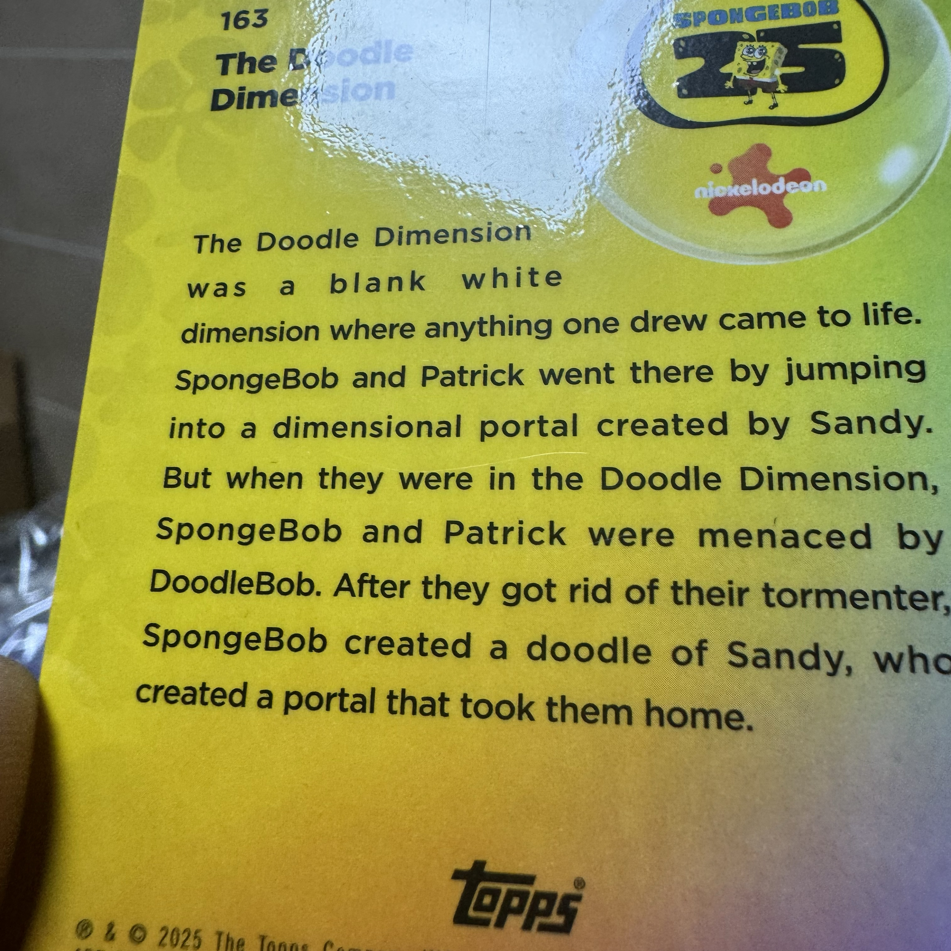 2025 Topps SpongeBob SquarePants 海绵宝宝 【十三笔】25周年蓝宝石 #163 派大星 章鱼哥 小蜗 50编 金碎冰折 横版 卡品如图(YY)