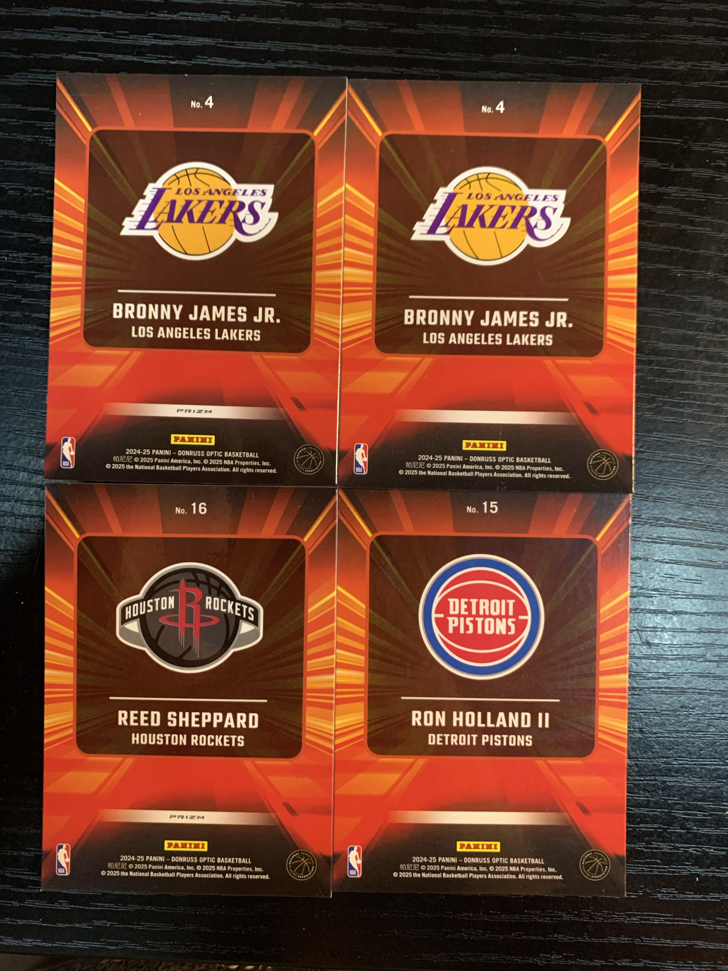 2024-25 donruss optic bronny james jr 杜蕾斯 湖人 布朗尼 詹姆斯 新秀 RC 快车道特卡 银折 霍兰德二世 谢泼德 base lot4张 Bass
